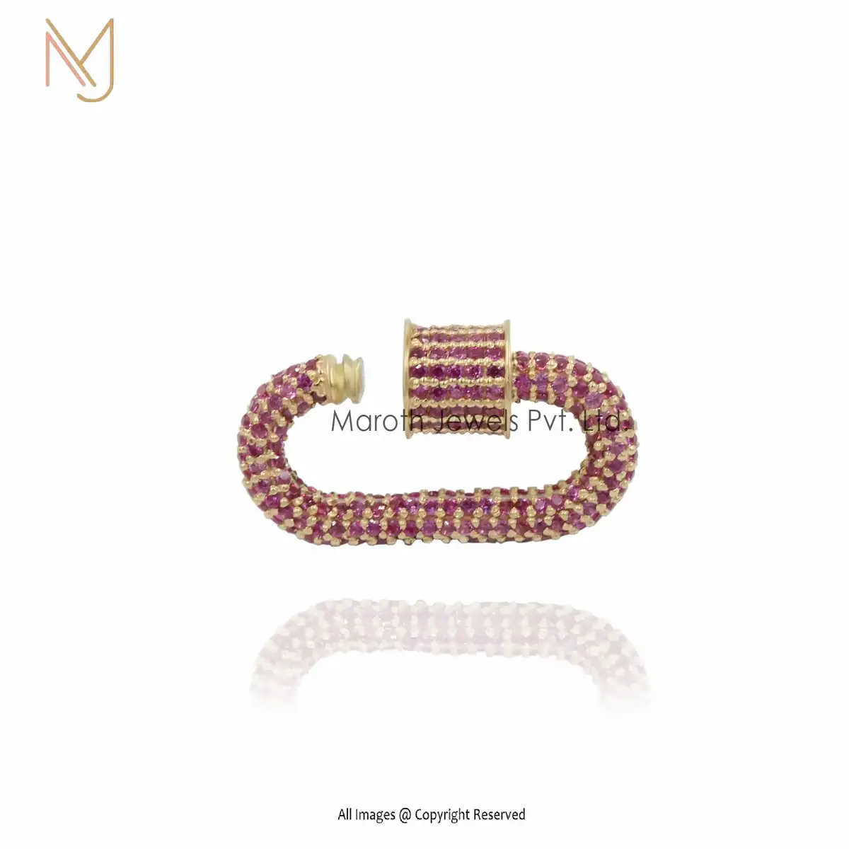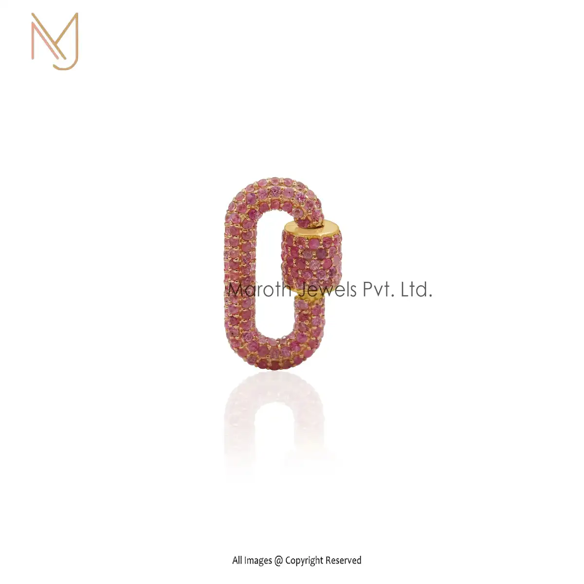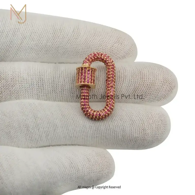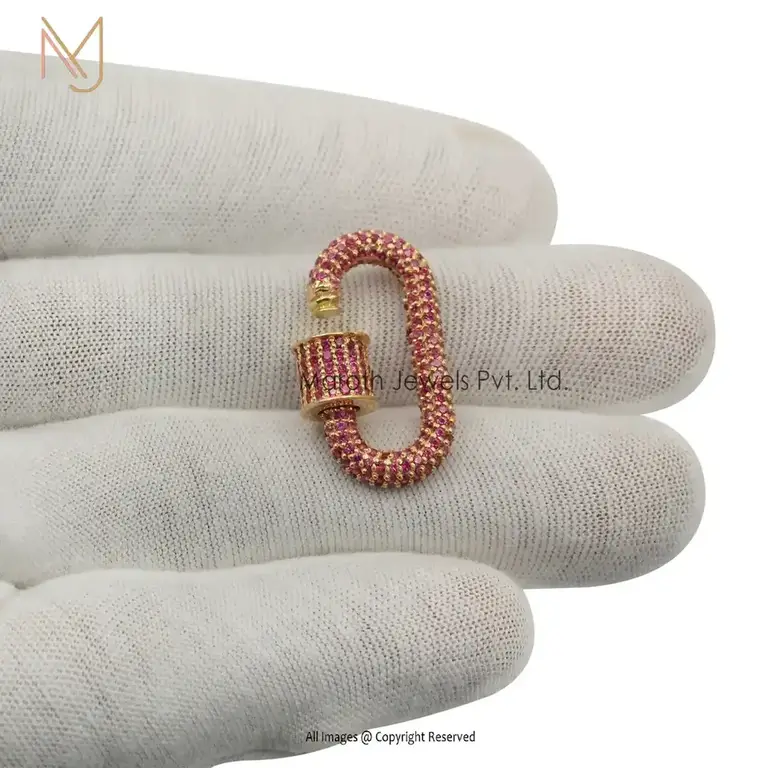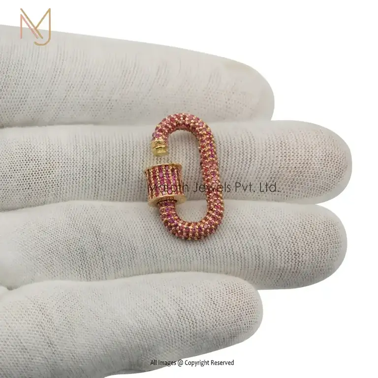 14K Gold Full Pave Pink sapphire Gemstone & Diamonds Carabiner Lock Manufacturer