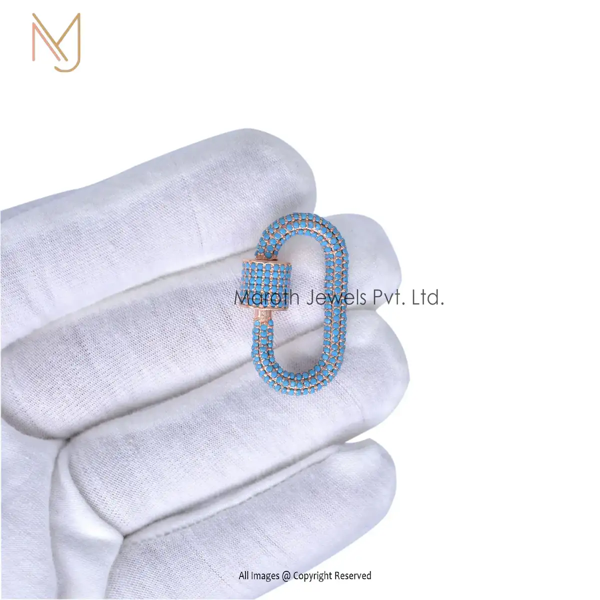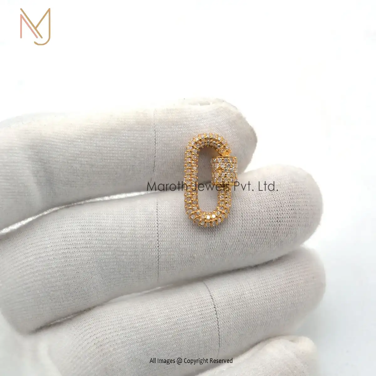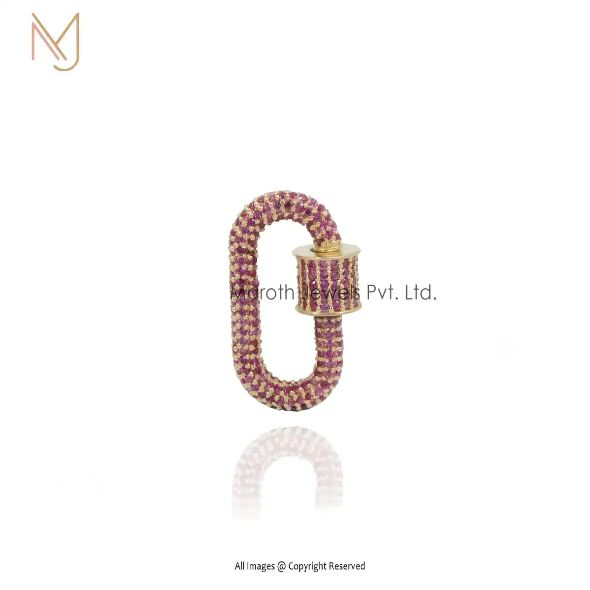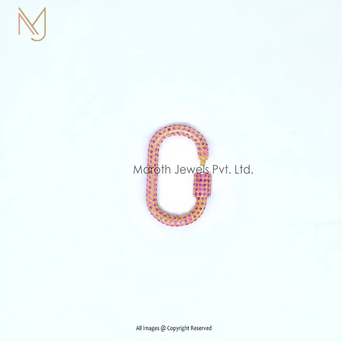 14K Gold Full Pave Pink sapphire Gemstone & Diamonds Carabiner Lock Manufacturer