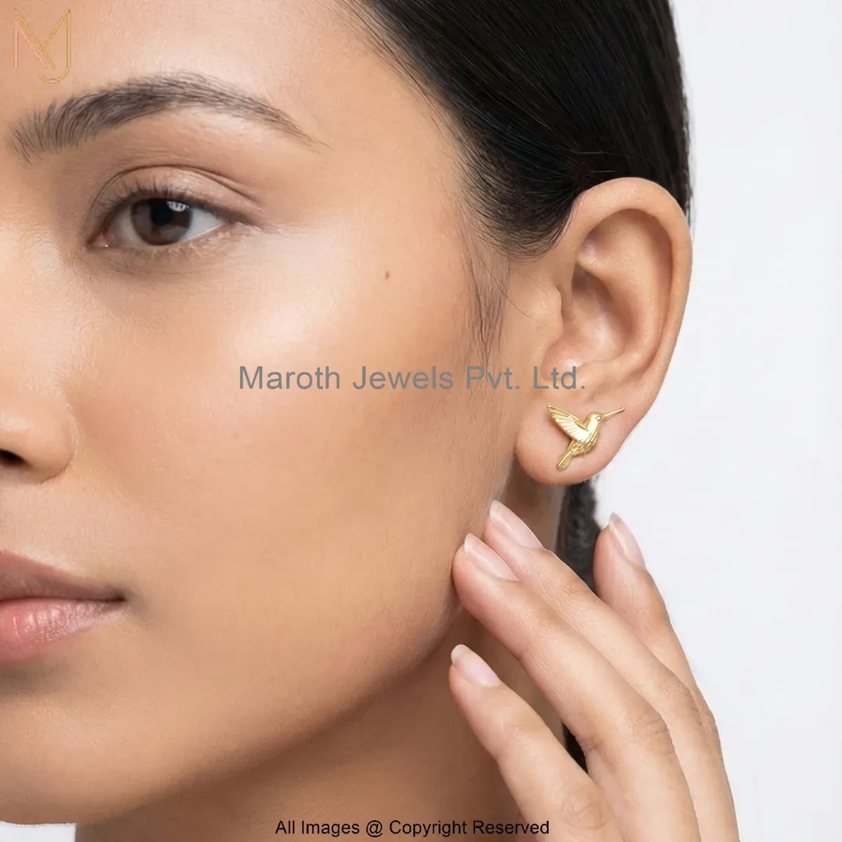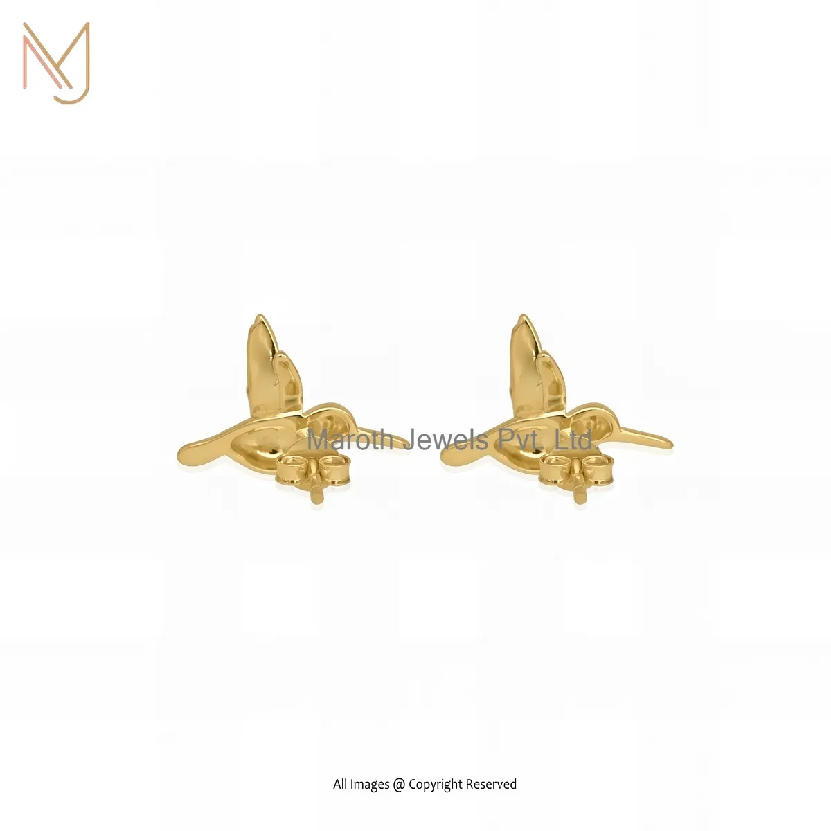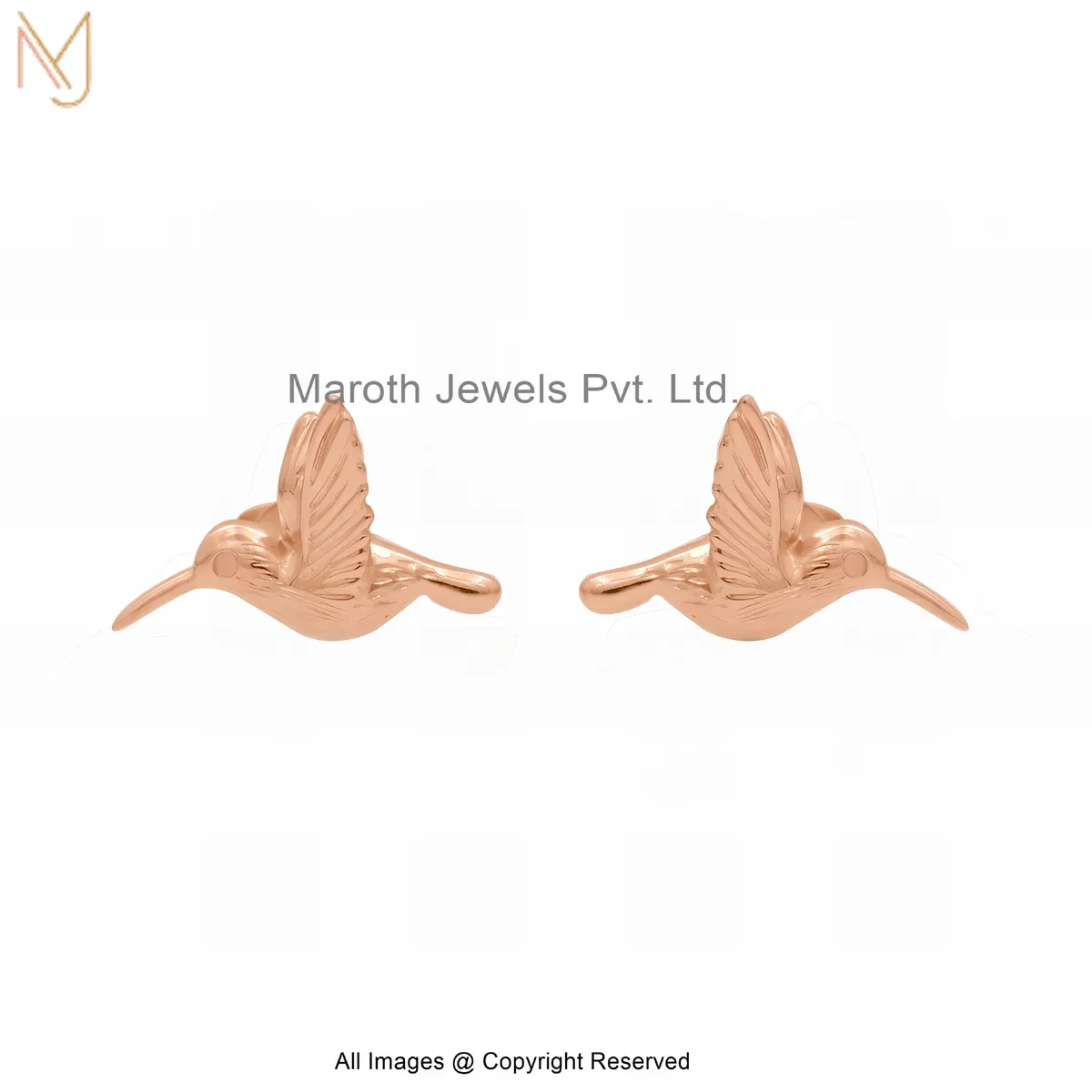 14K Rose Gold Bird Stud Earring Custom Jewelry