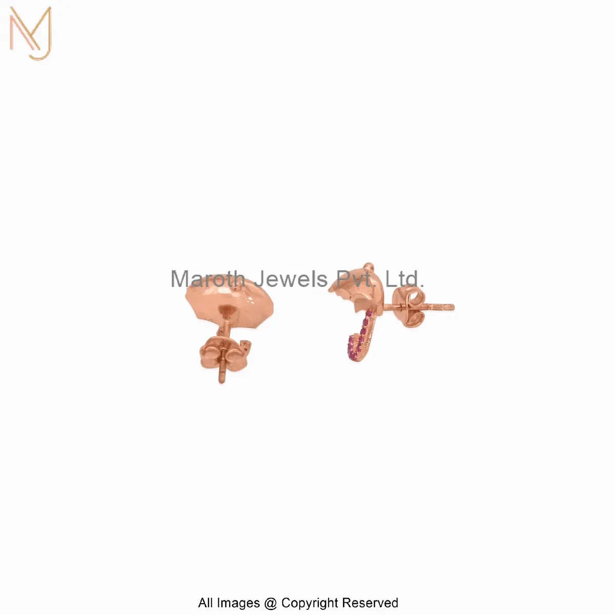 14K Rose Gold Ruby Umbrella Stud Earrings Jewelry Supplier