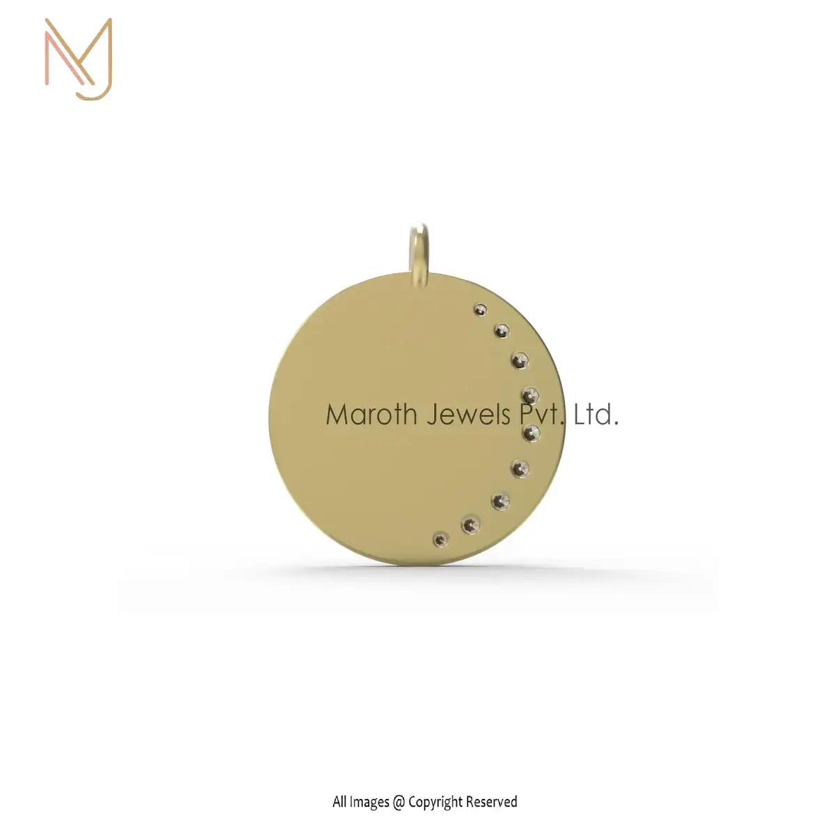 14K Soild Yellow Gold Diamond Half Moon Pendant Designs Jewelry USA