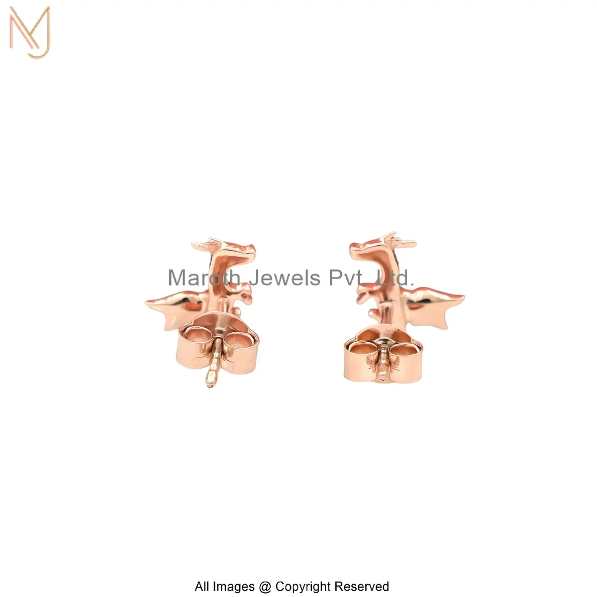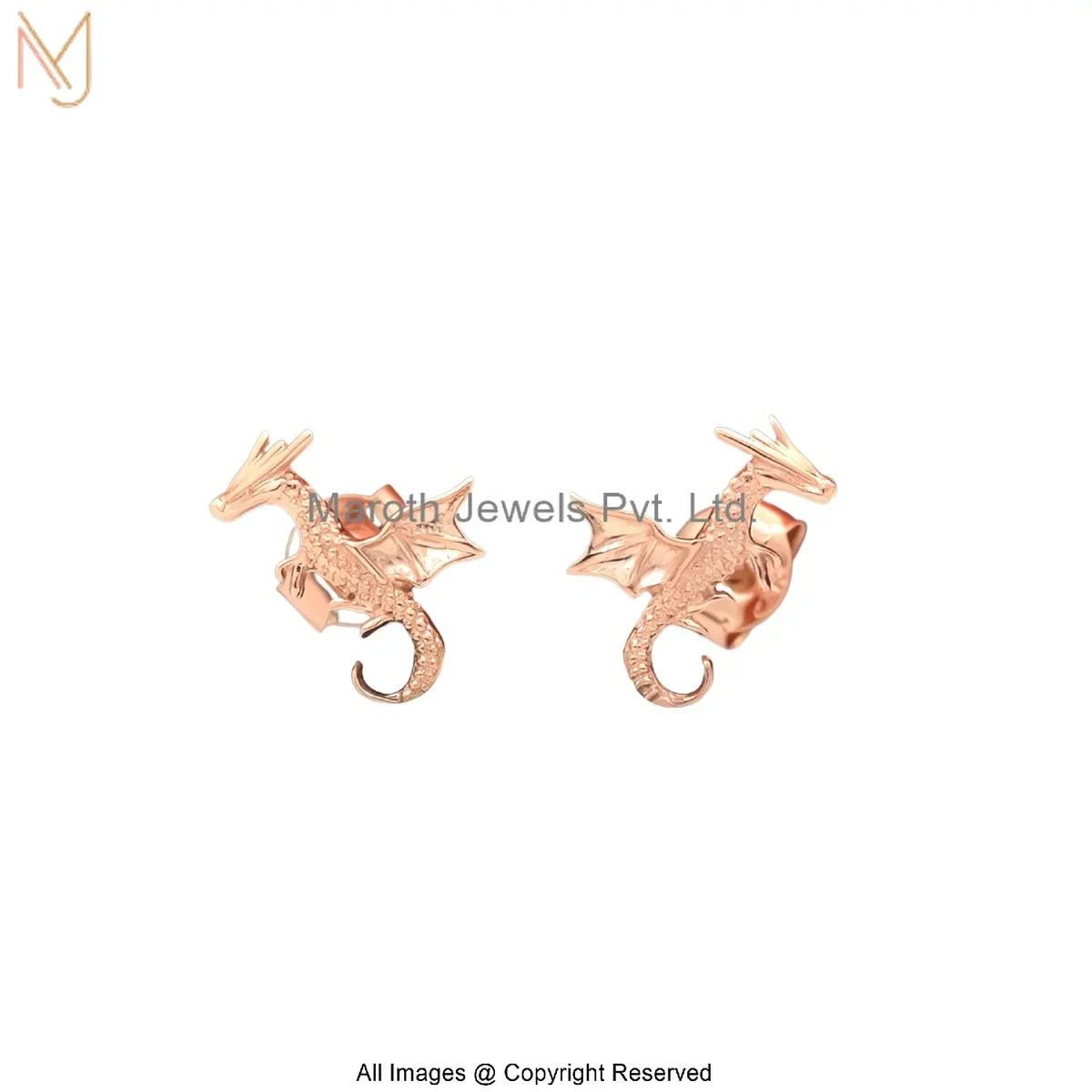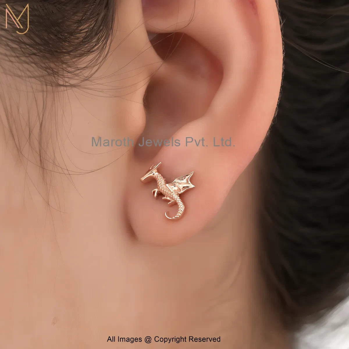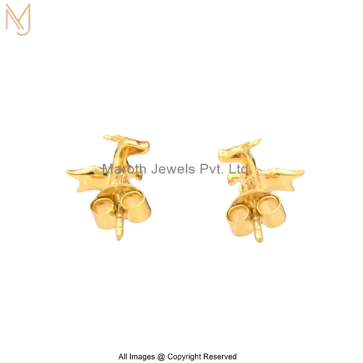 14K Solid Yellow Gold Dragon Stud Earring Custom Jewelry