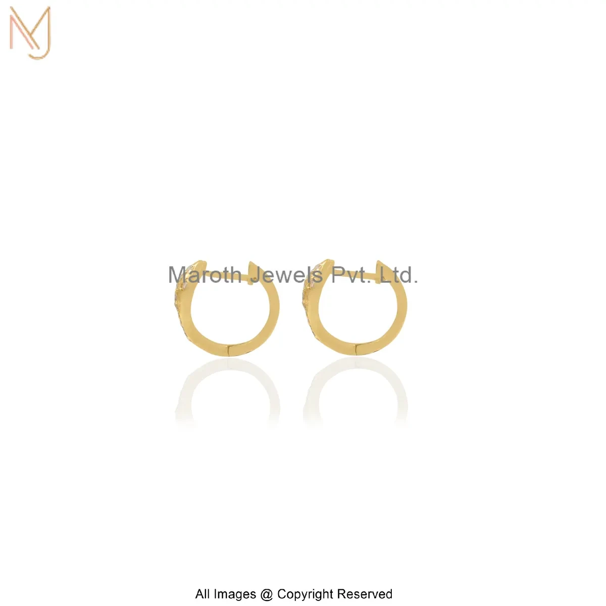14K Solid Yellow Gold Pave Diamond Snake Huggies Earring Jewelry Supplier