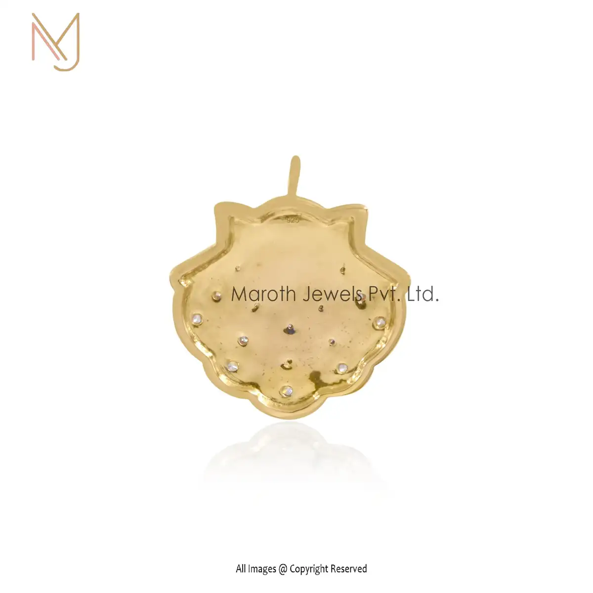 14K Solid Yellow Gold White Cubic Zircoina Sea Shell Pendant Jewelry USA