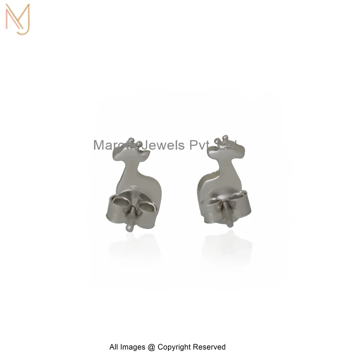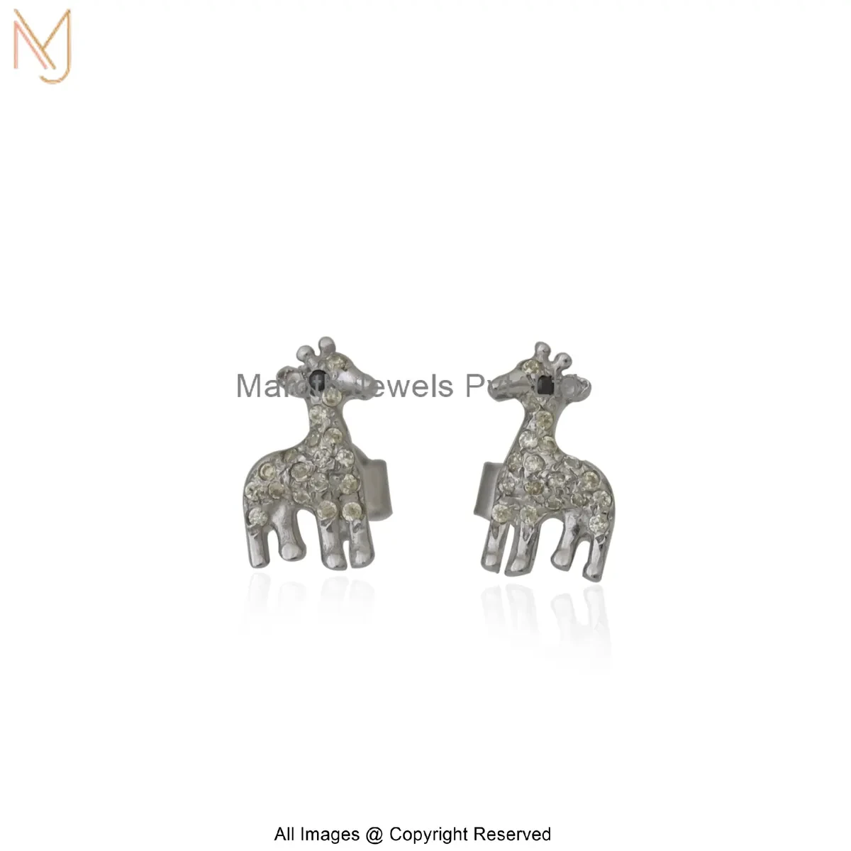 14K White Gold Black Cubic Zircon Ziraffe Stud Earring Custom Jewelry