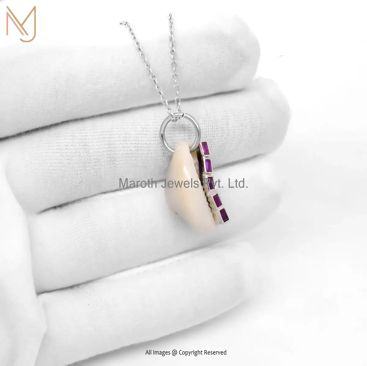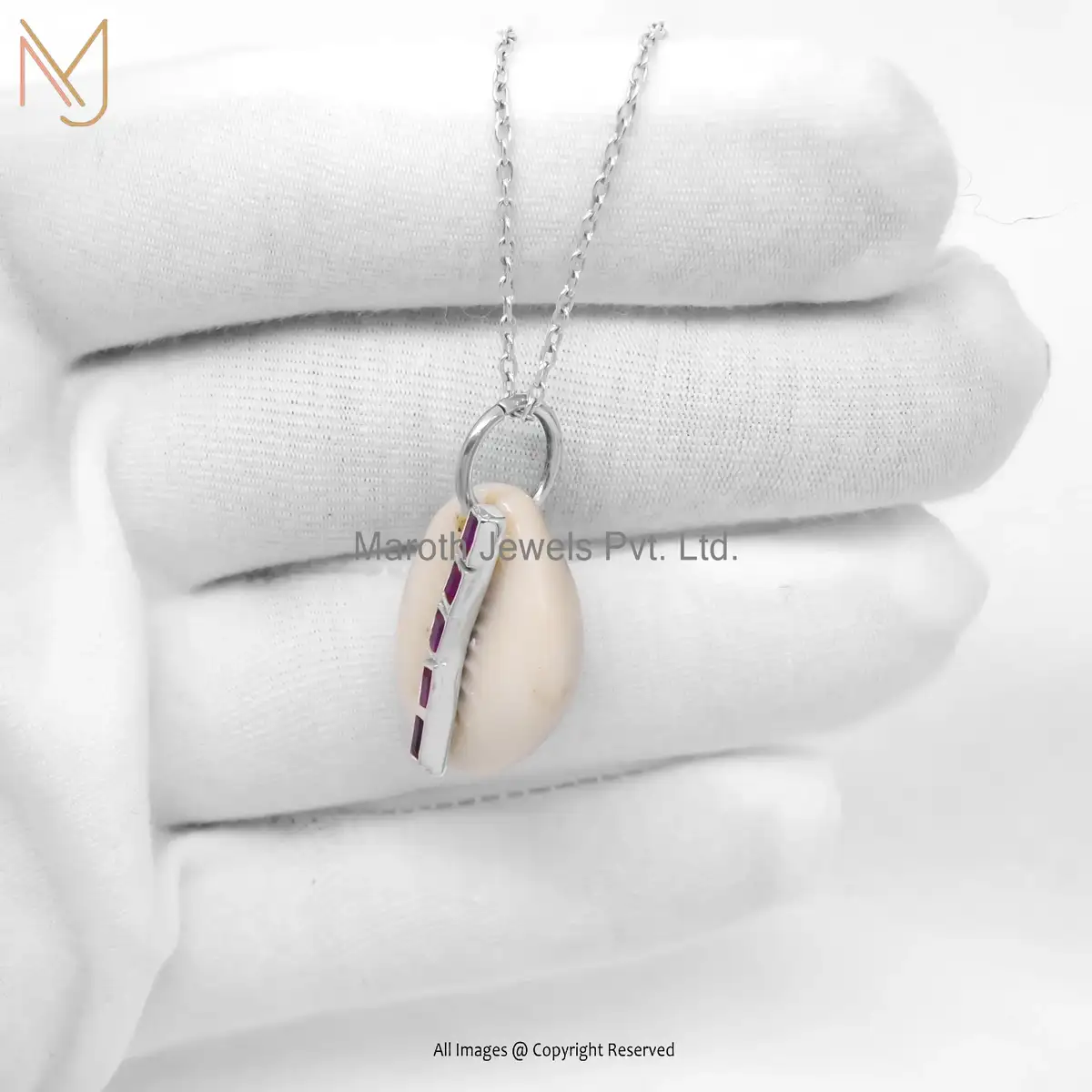 14K White Gold Cowrie Shell Ruby Pendant Necklace Manufacturer