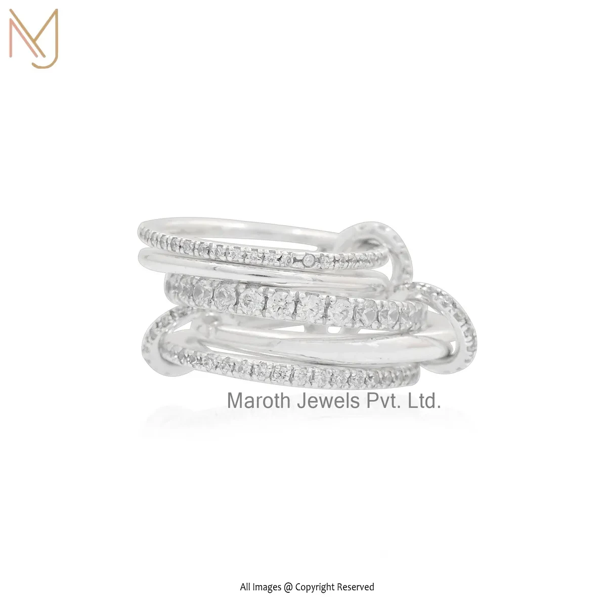 14K White Gold Cubic Zircon Connector Band Ring Manufacturer