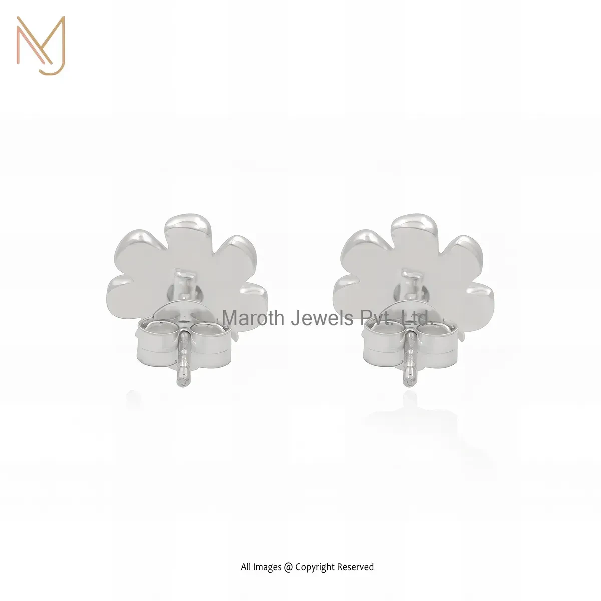 14K White Gold Cubic Zircon Flower Stud Earring Manufacturer