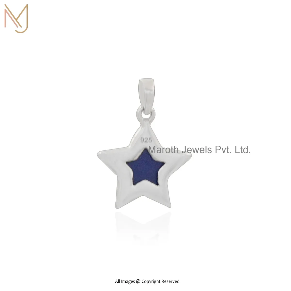 14K White Gold Cubic Zircon & Lpaiz Lazuli Star Pendant Custom Jewelry