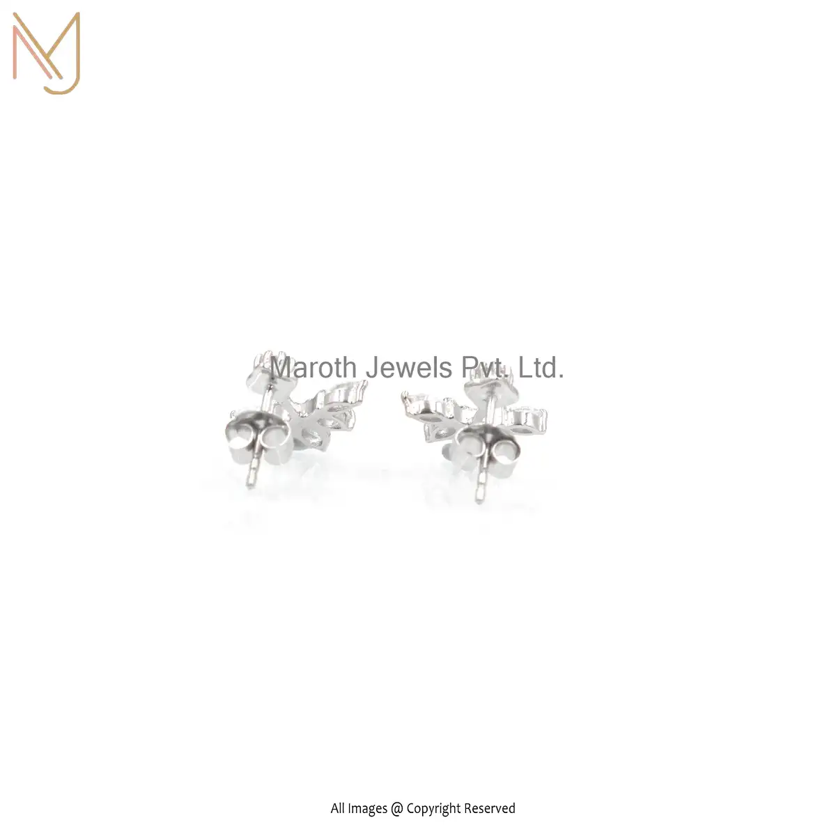 14K White Gold Cubic Zircon Sparkle Stud Earring Jewelry Supplier