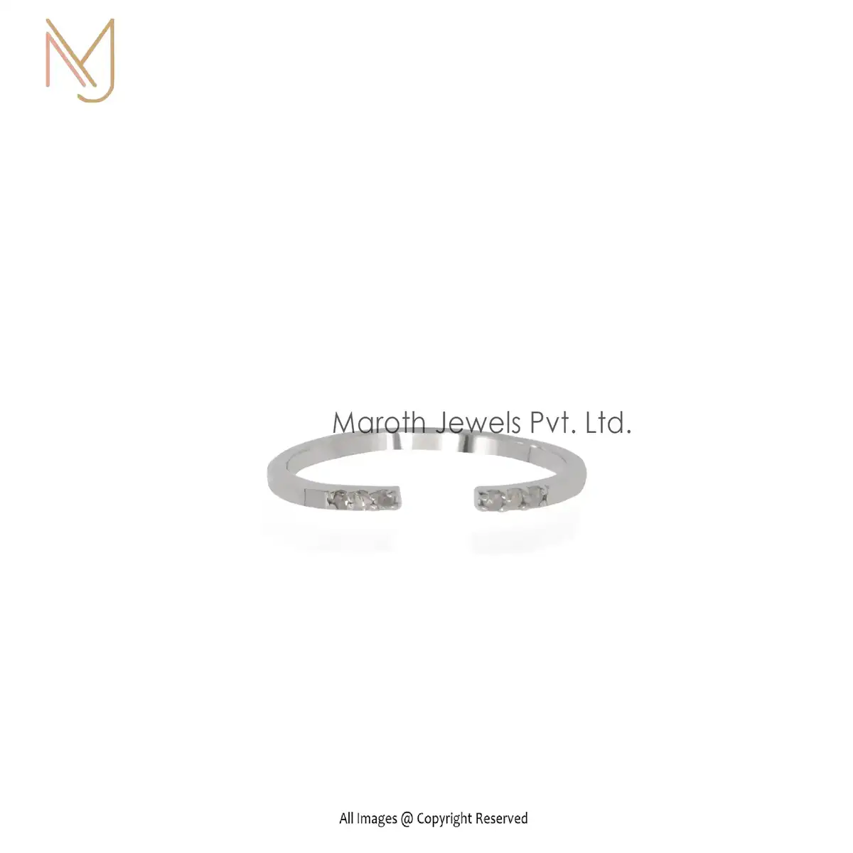 14K White Gold Diamond Cuff Ring Jewelry Manufacturer