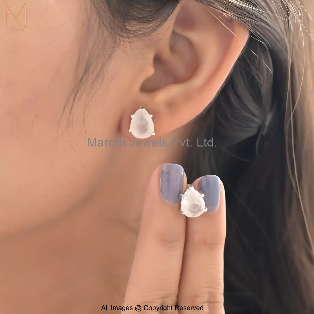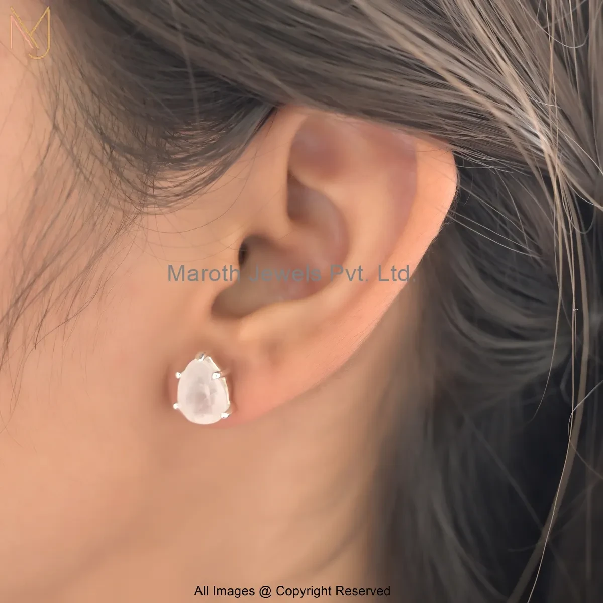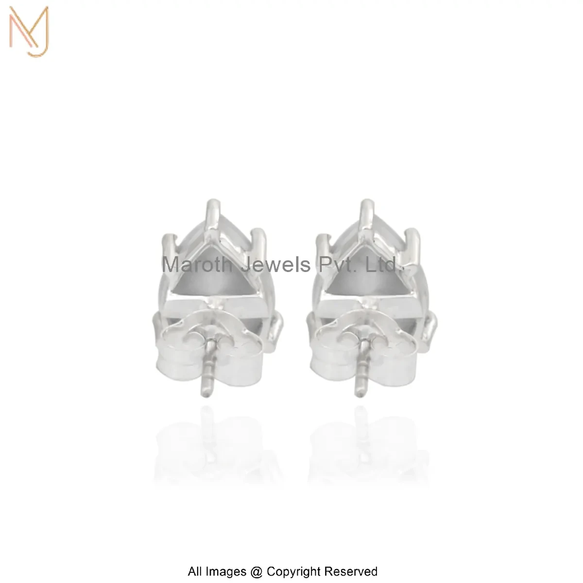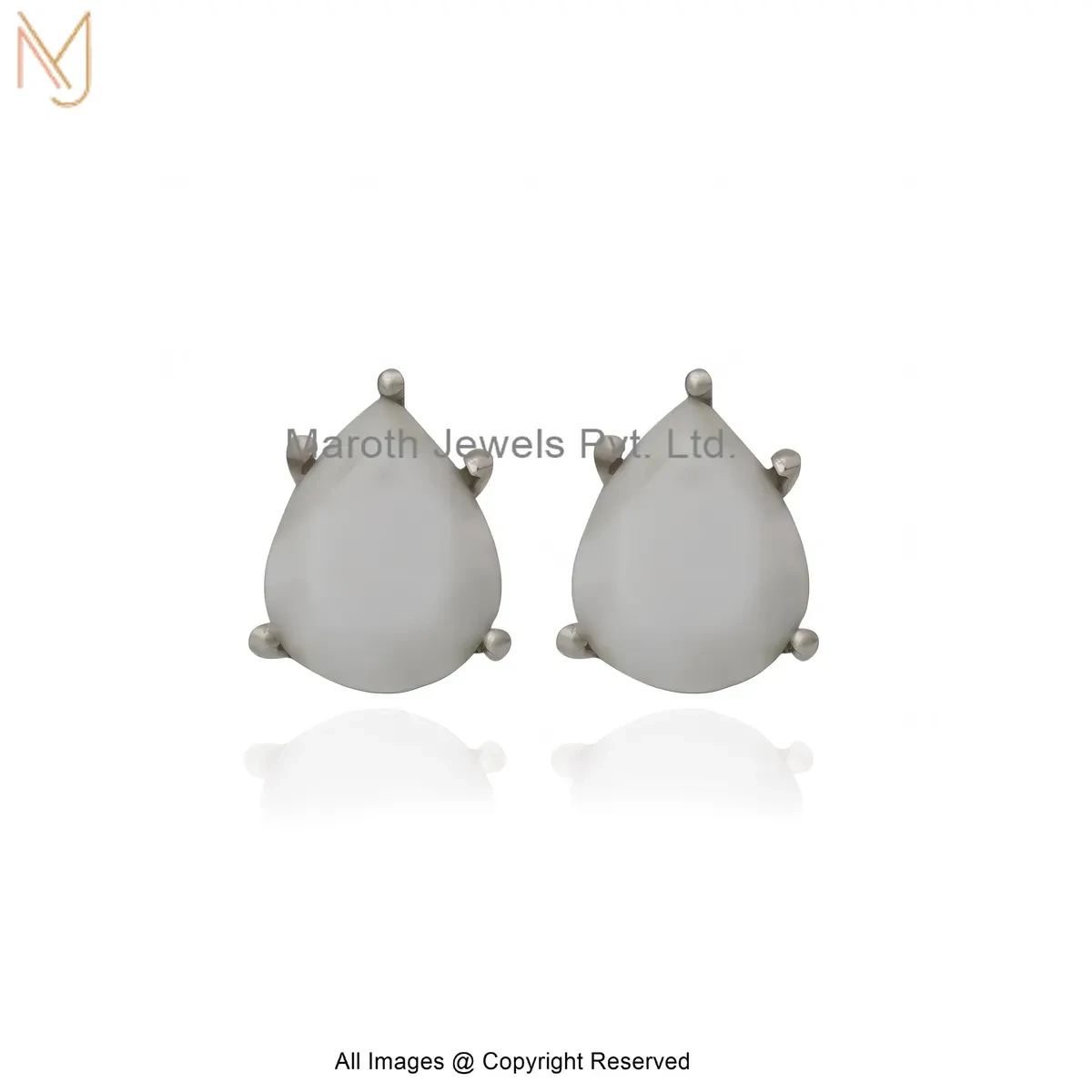 14K White Gold Elegant Pear Shape White Howlite Stud Earring Manufacturer