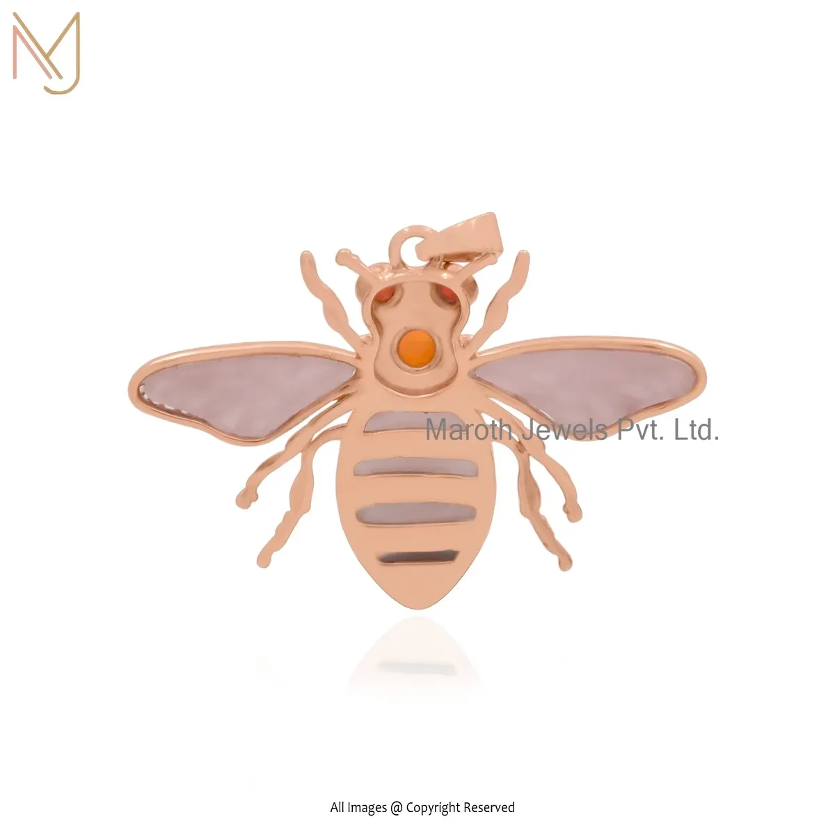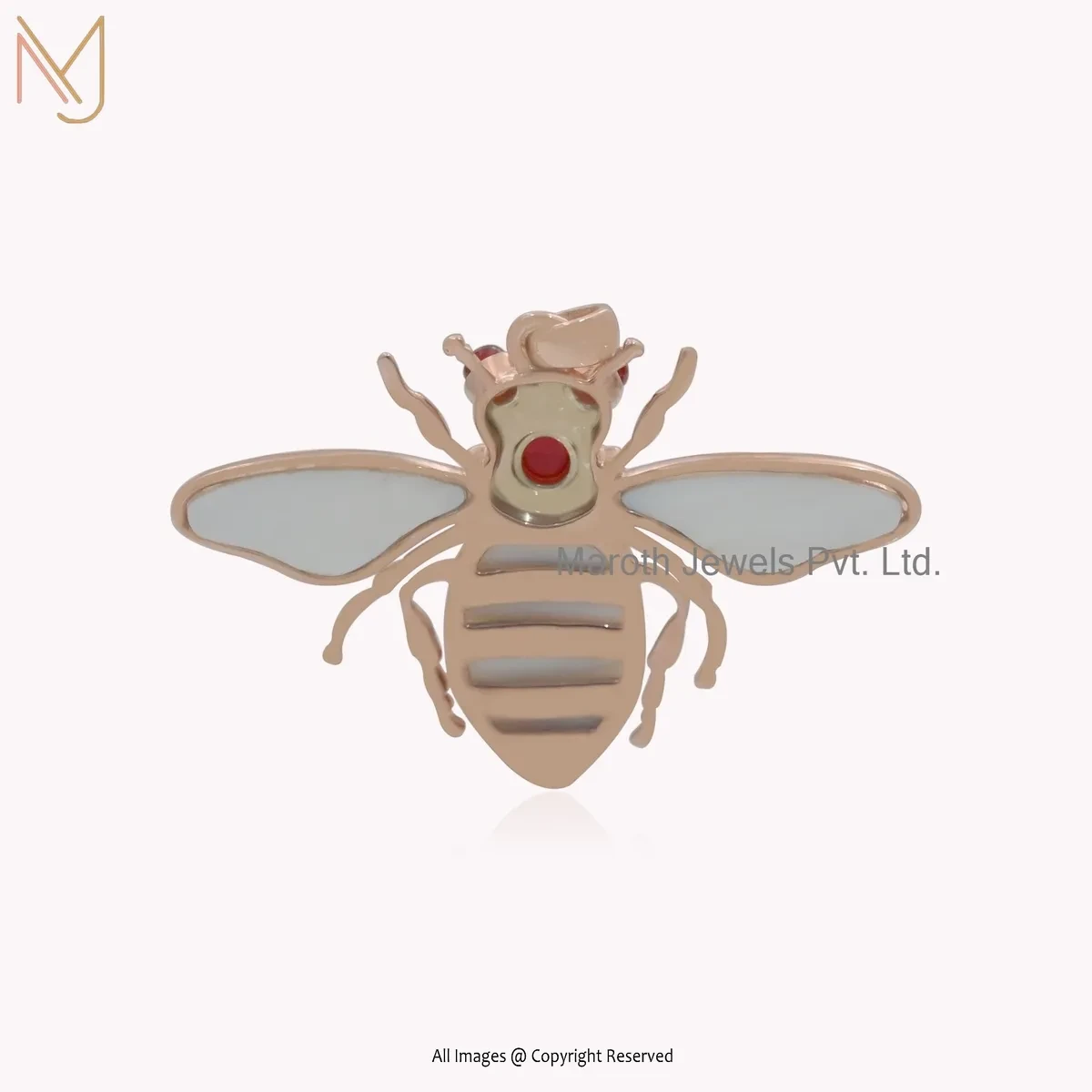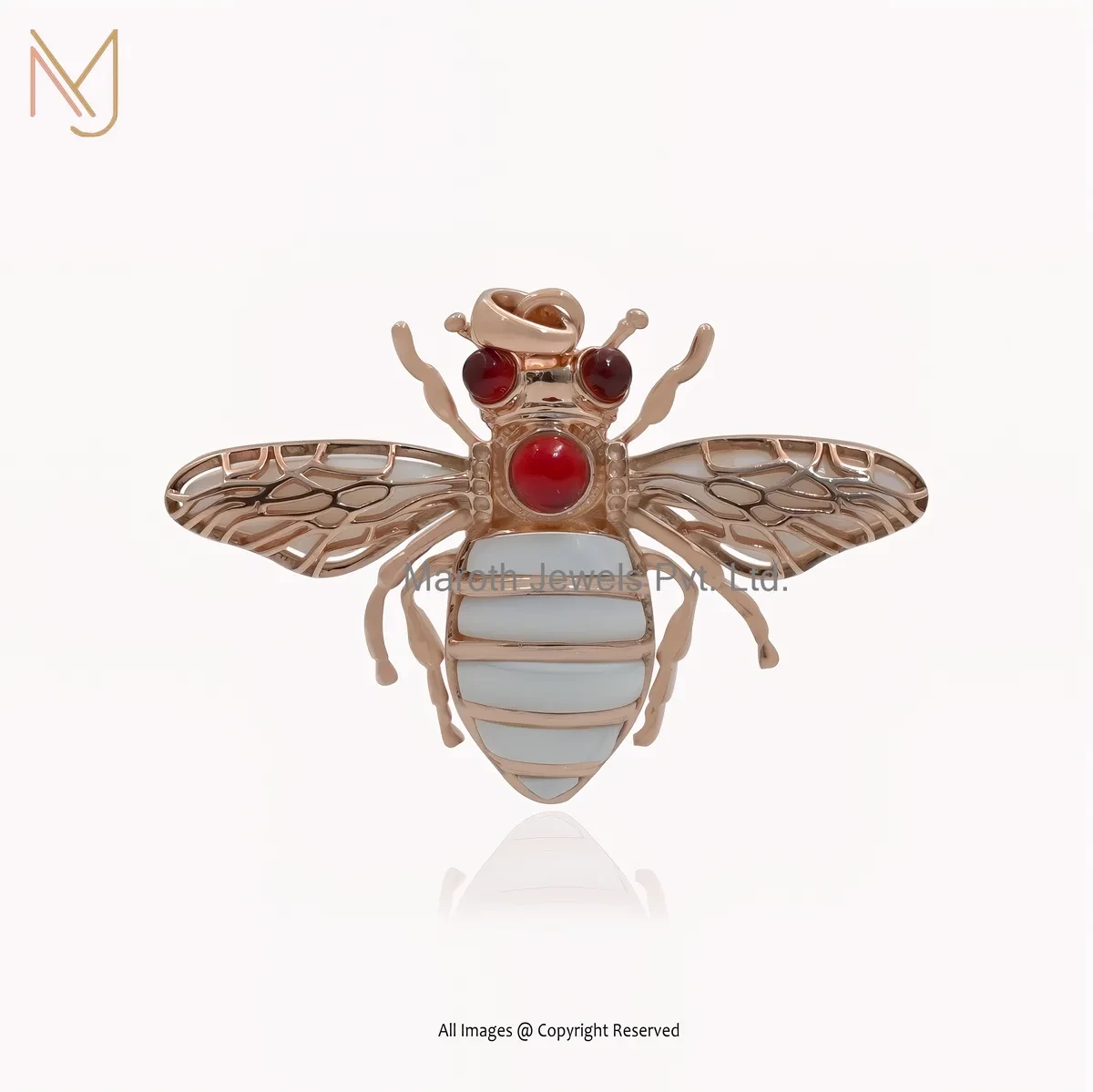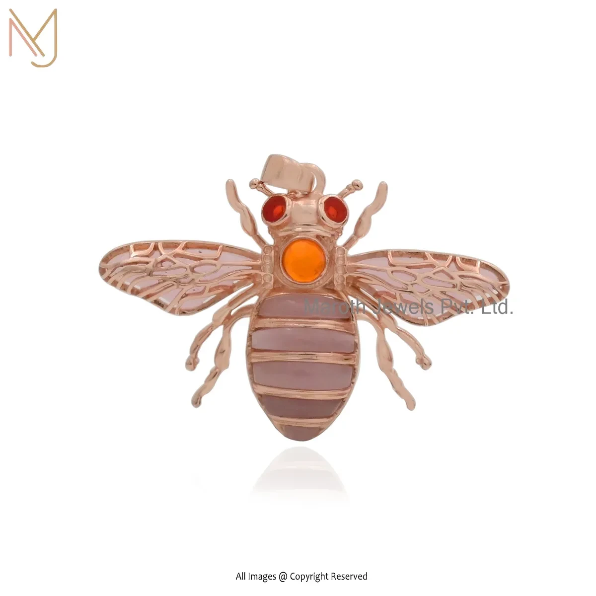 14K White Gold Green Opal & Garnet Bee Charm Pendant Jewelry Supplier