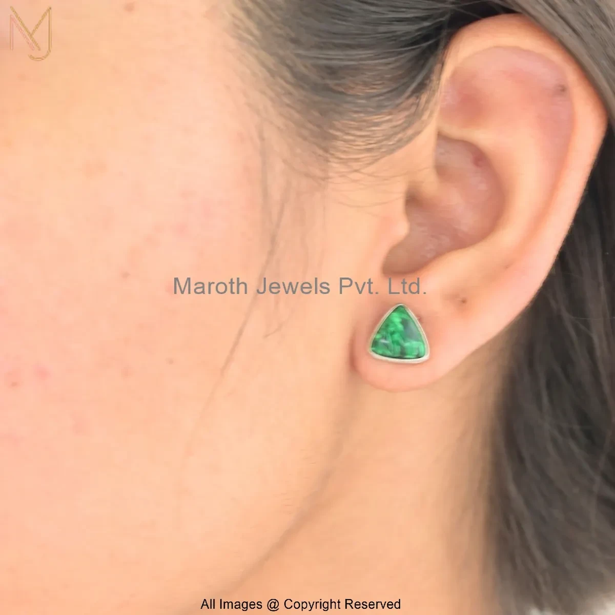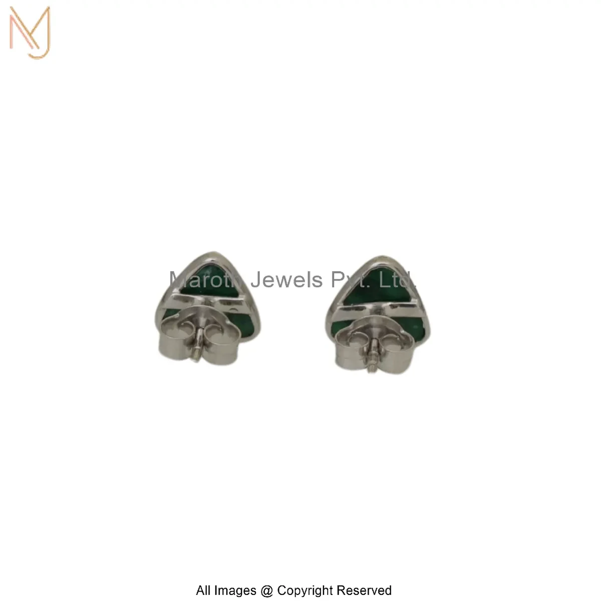 14K White Gold Malachite Triangle Stud Earring Custom Jewelry