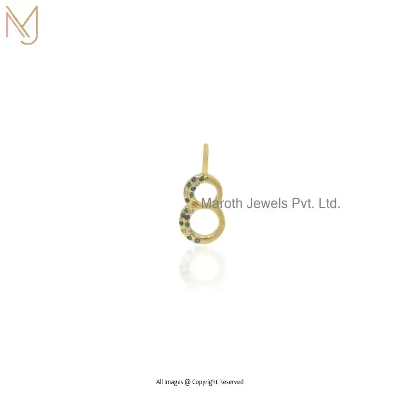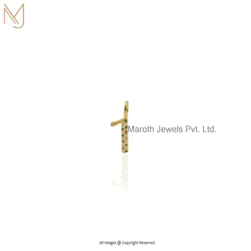 14K White Gold Multi Gemstone Alphabet Initial Letter Charm Pendant USA
