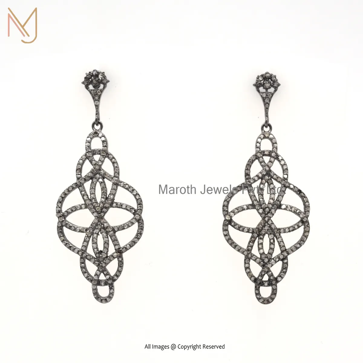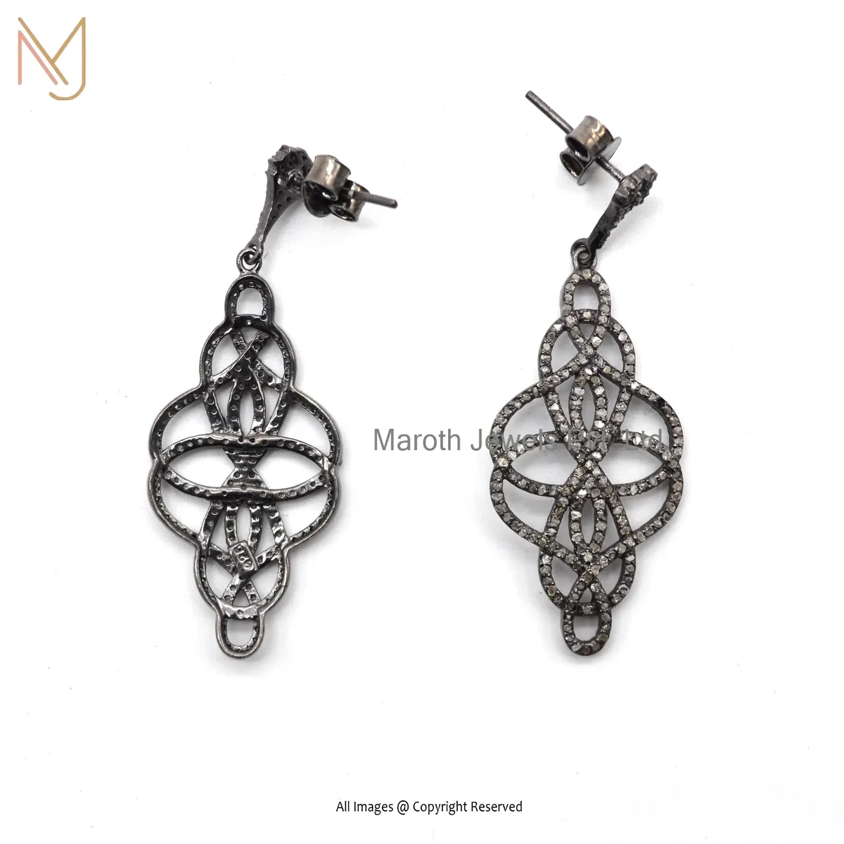 14K White Gold Pave Diamond Designer Drop Earring Jewelry Supplier