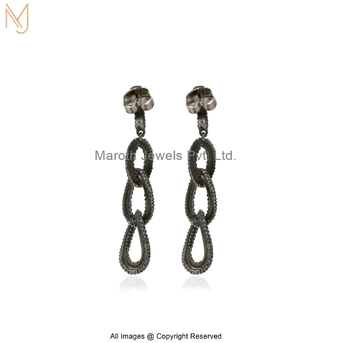 14K White Gold Pave Diamond Infinity Link Drop Earrings Custom Jewelry