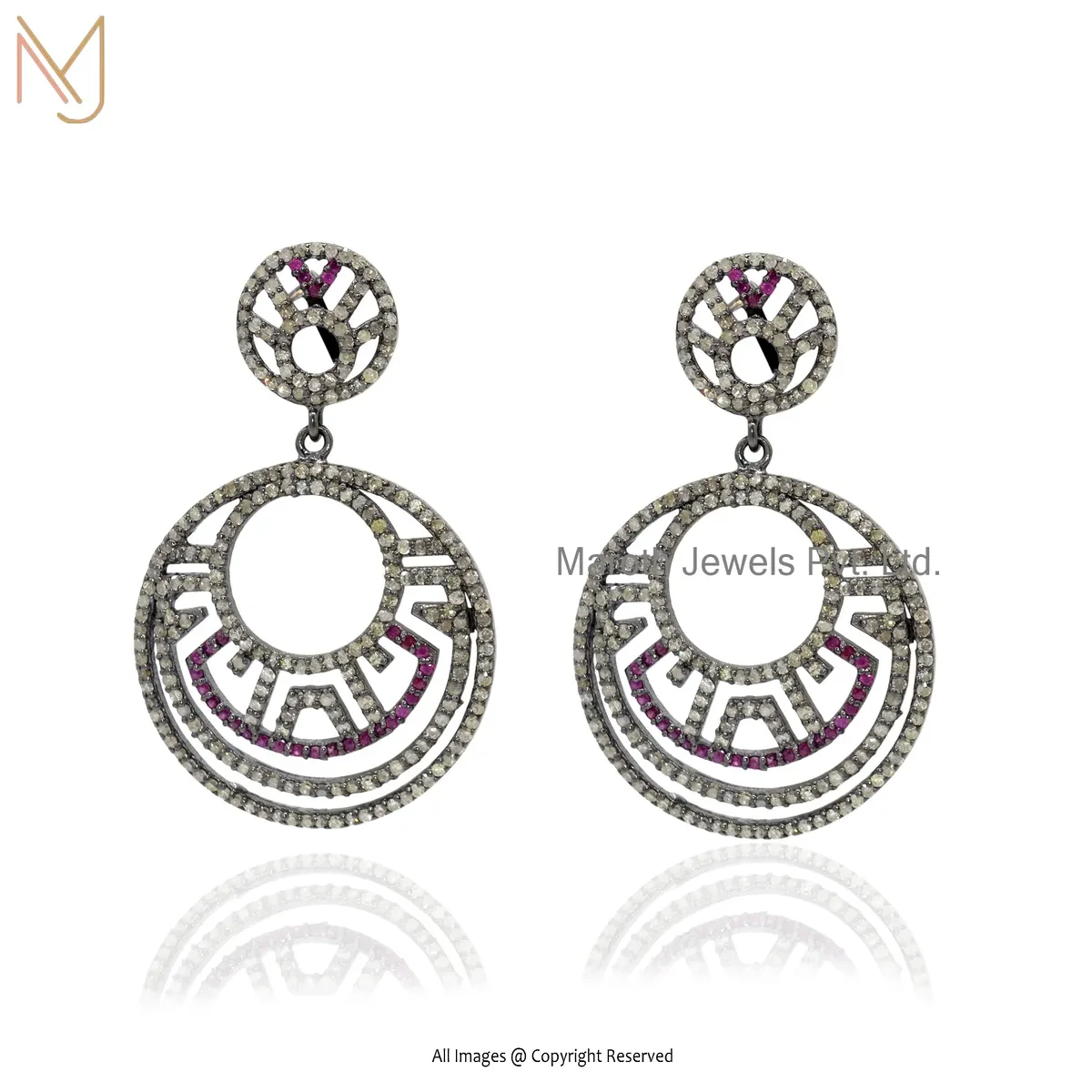 14K White Gold Pave Diamond Ruby Gemstone Drop Earring Manufacturer