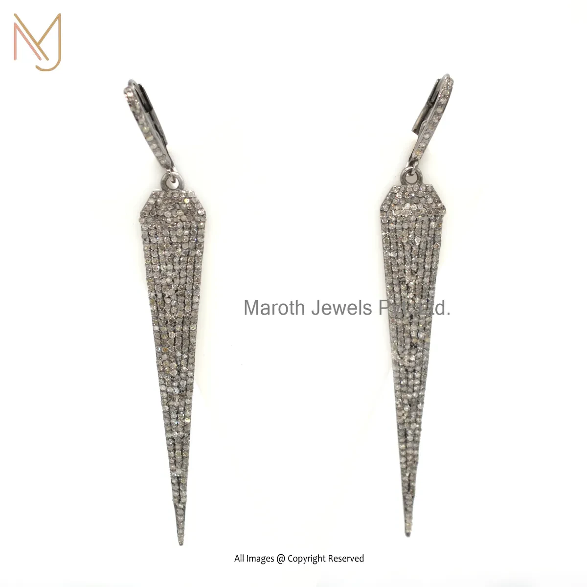 14K White Gold Pave Diamond Spike Dangle Earring Custom Jewelry