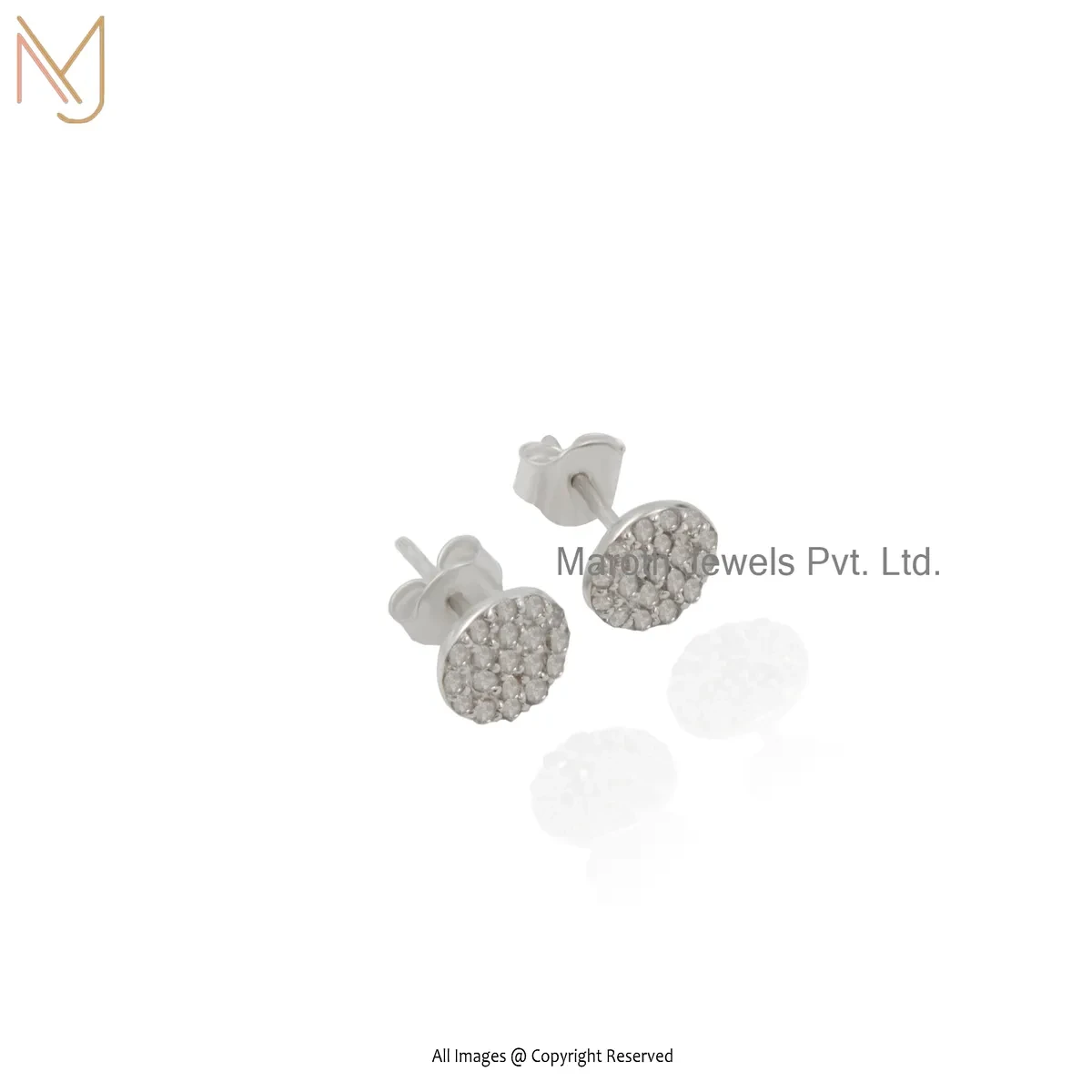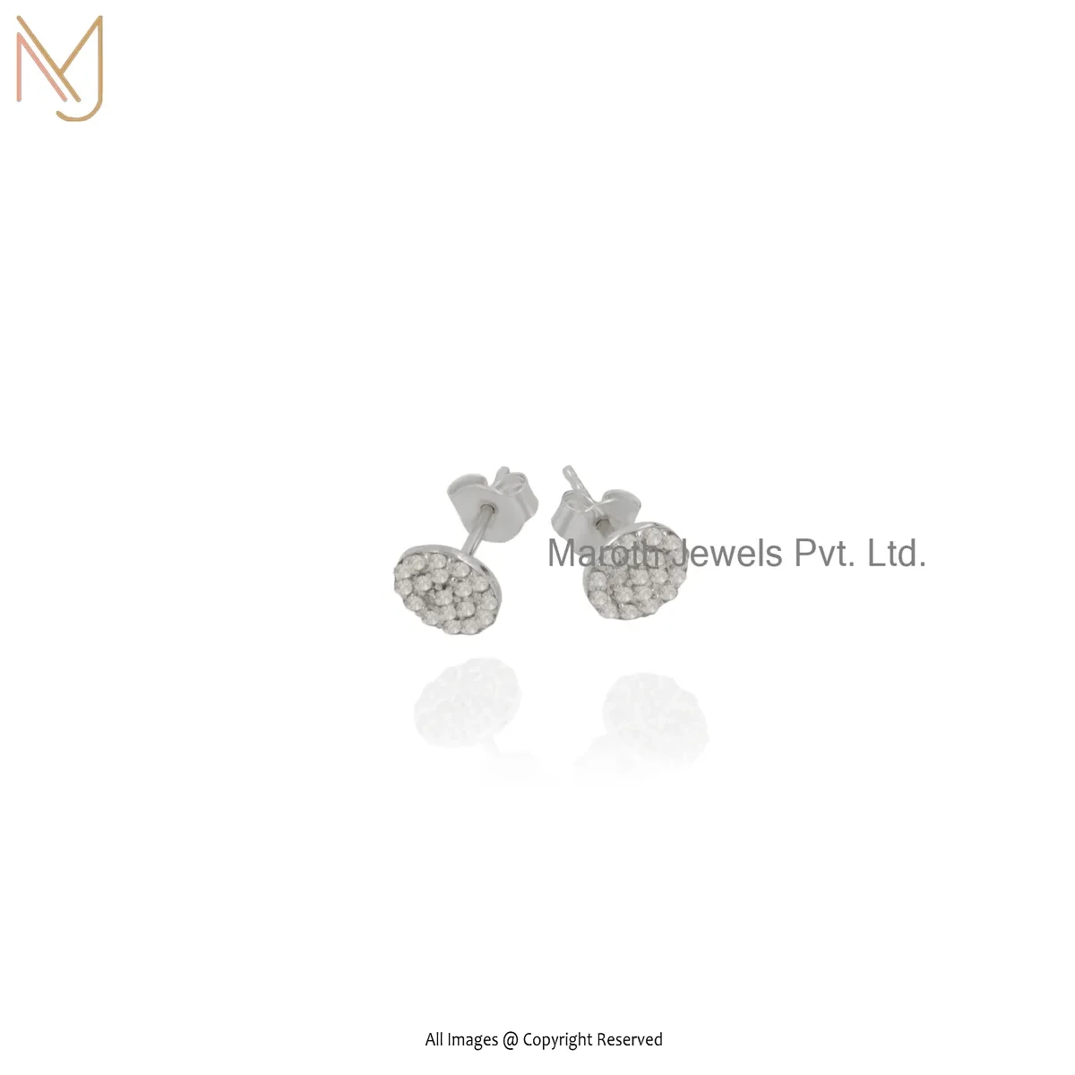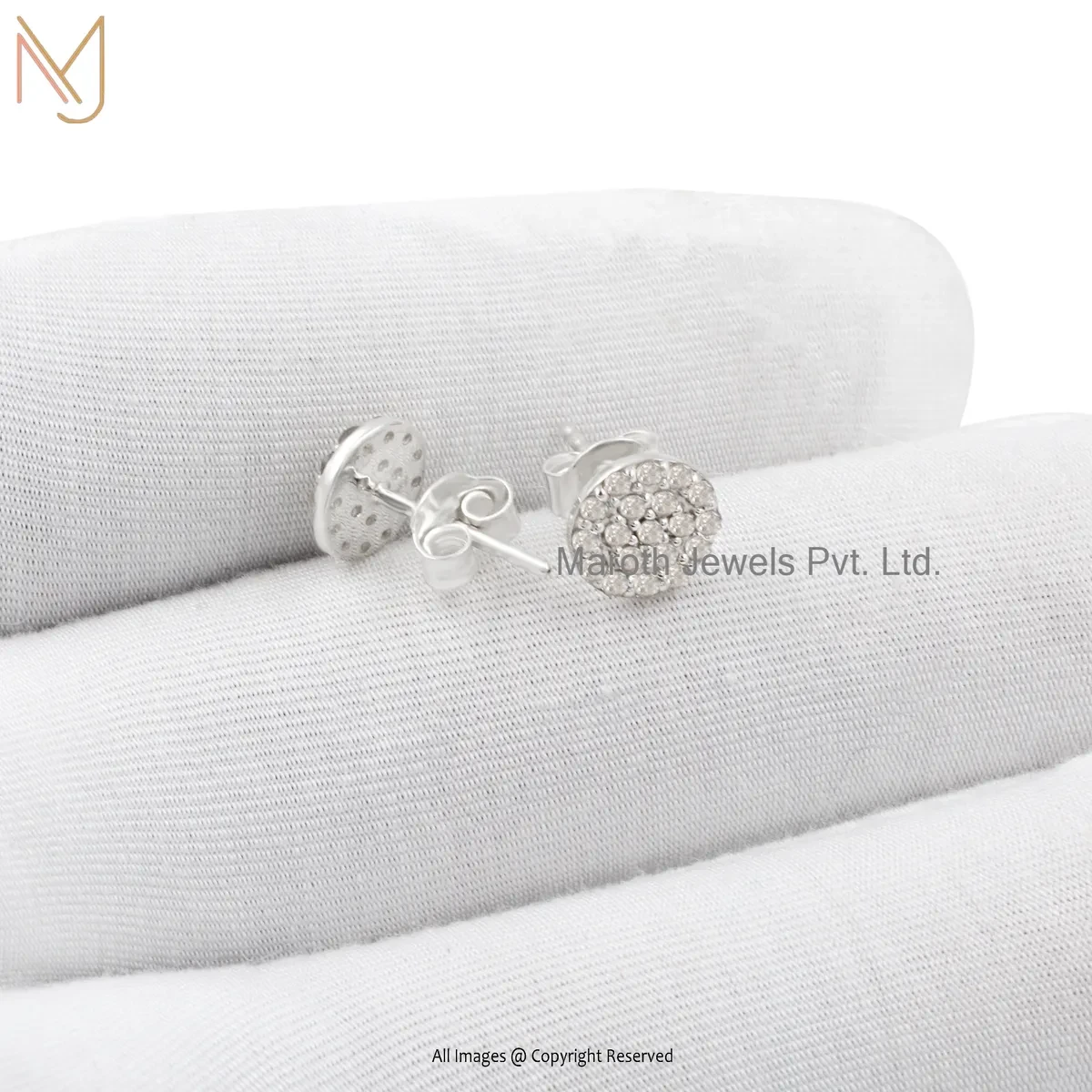 14K White Gold Pave Diamond Studded Circular Studs Earring Manufacturer