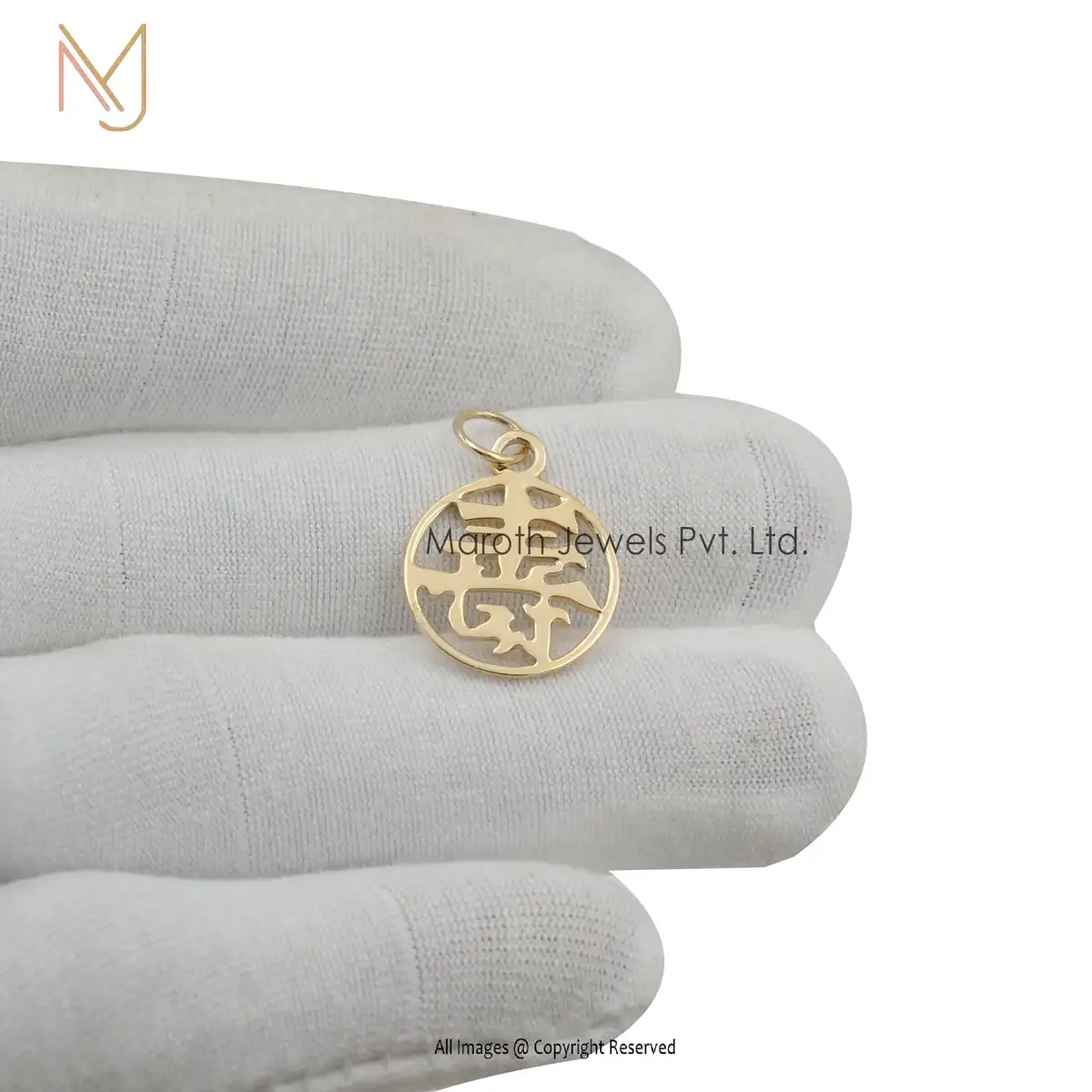 14K White Gold Round Disc Chinese Name Pendant Jewelry Supplier