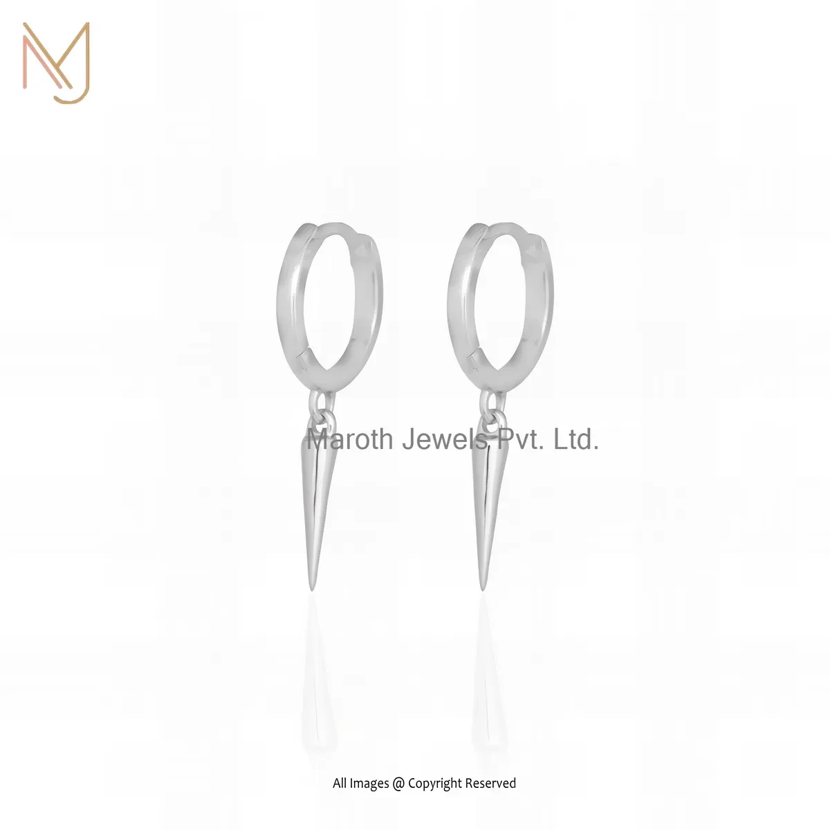 14K White Gold Spike Huggie Earrings Jewelry Supplier