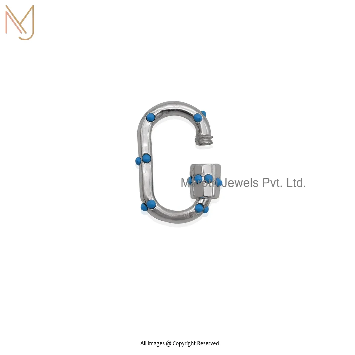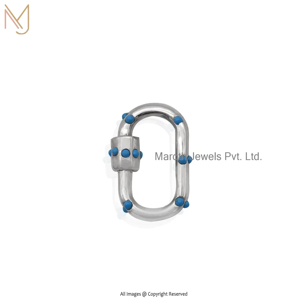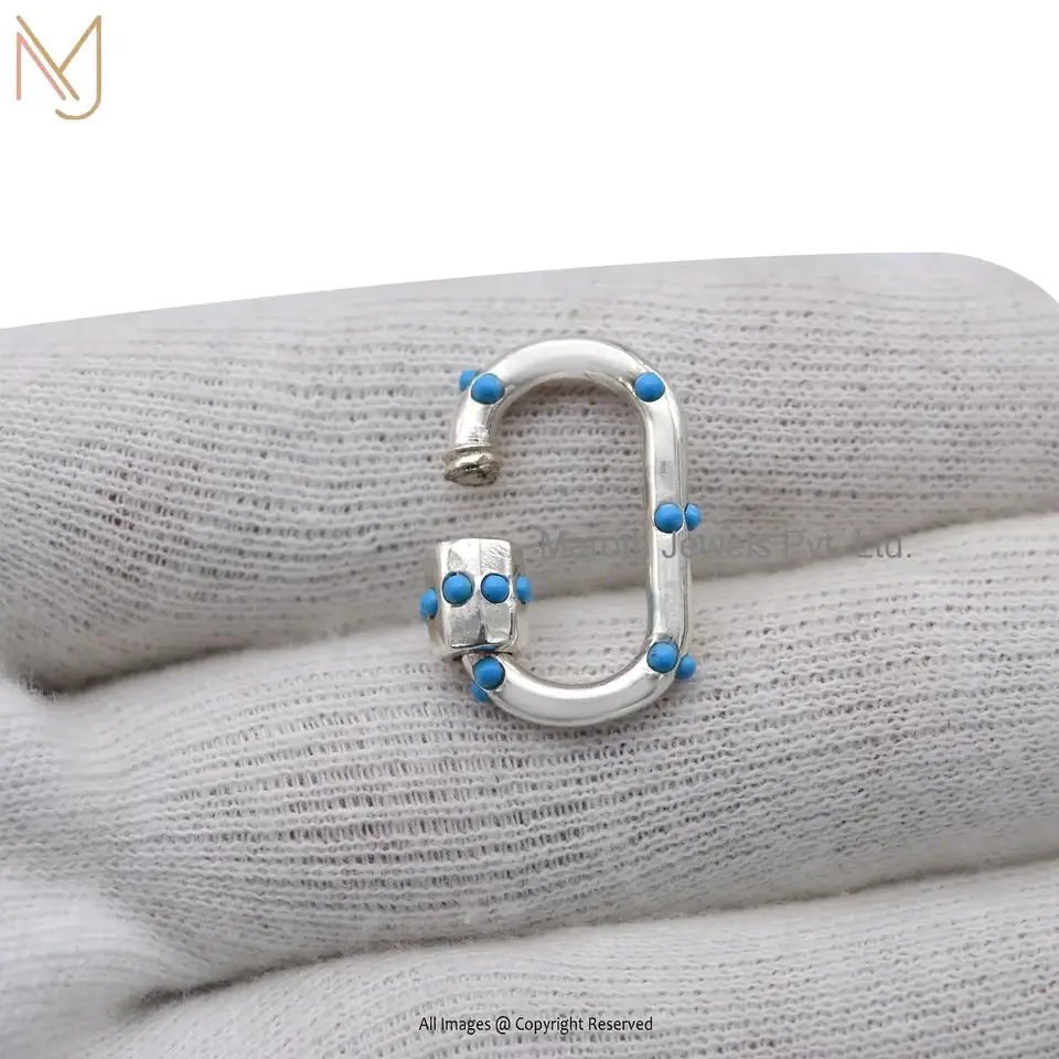 14K White Gold Turquoise Gemstone Carabiner Lock Jewelry Supplier