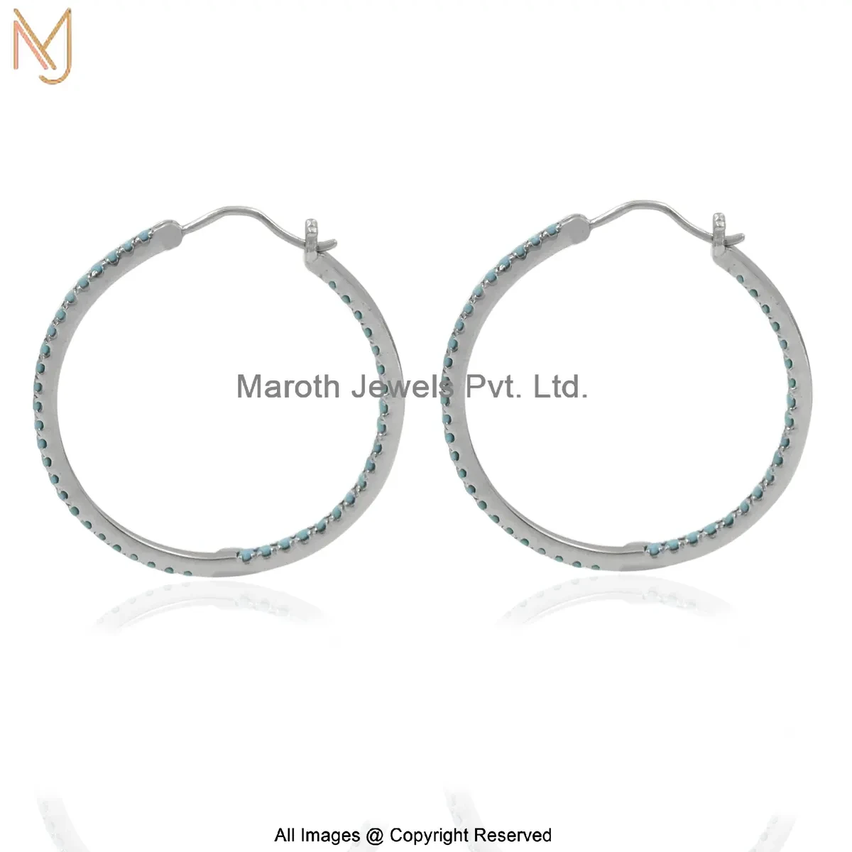 14K White Gold Turquoise Hoop Earring Manufacturer
