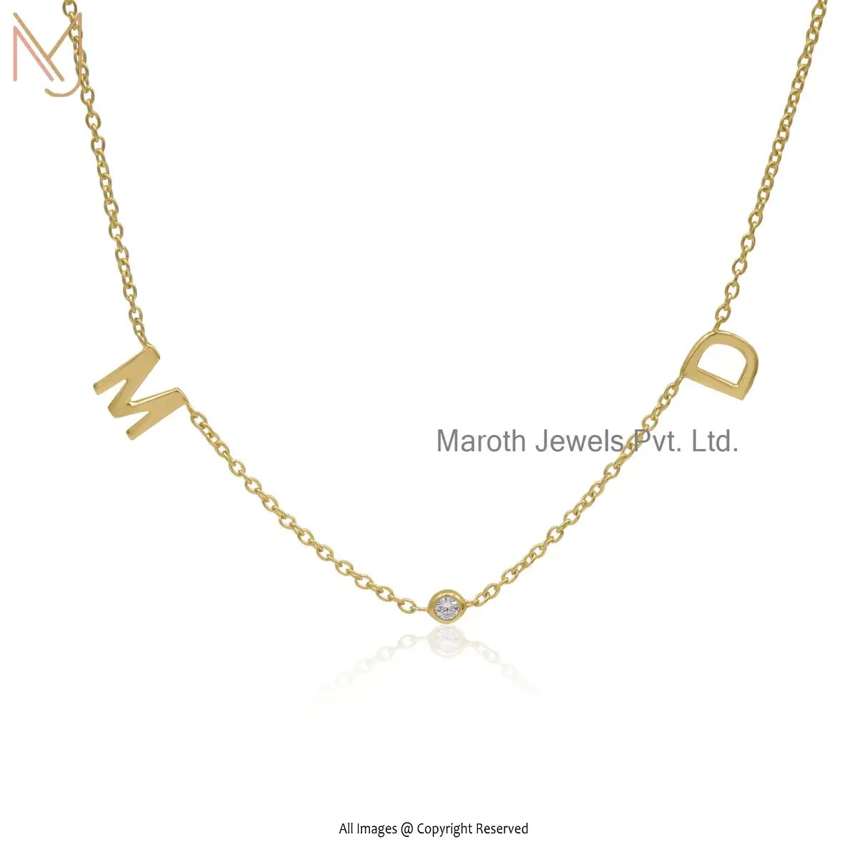14K White Gold Vermeil Two Letter Bezel Nameplate Necklace USA