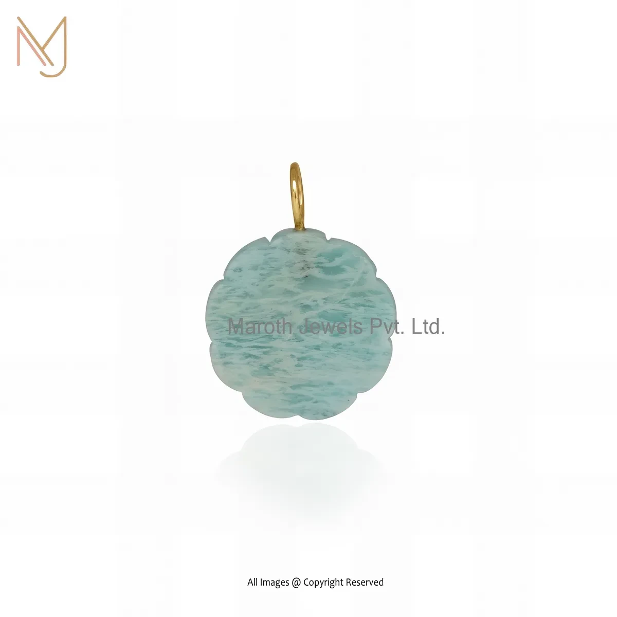14K Yellow Gold Amazonite Gemstone Flower Pendant Manufacturer