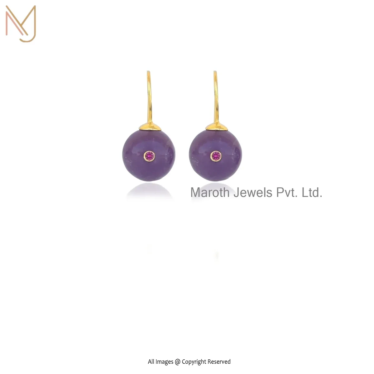 14K Yellow Gold Amethyst And Ruby Cubic Zircon Ball Hoop Earring USA