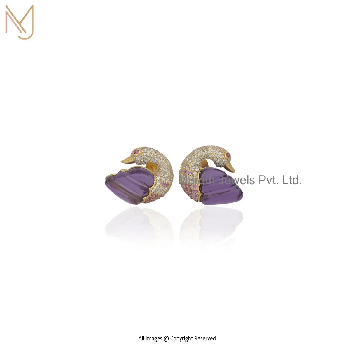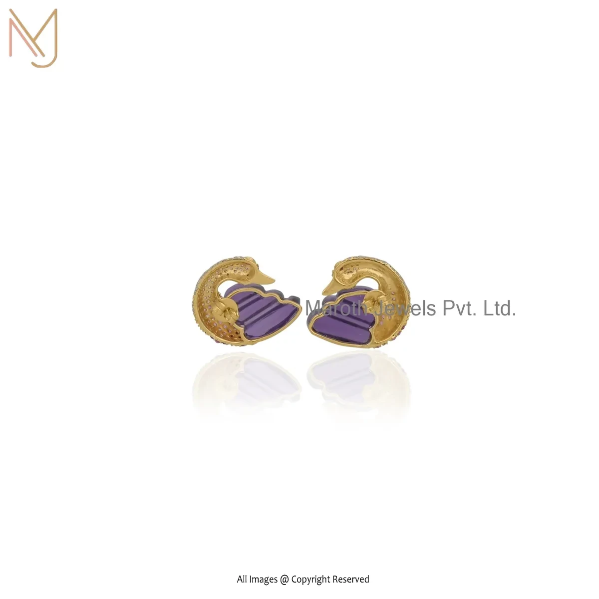 14K Yellow Gold Amethyst & Ruby Gemstone Peacock Studs Earring Manufacturer