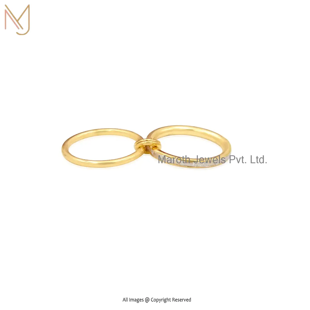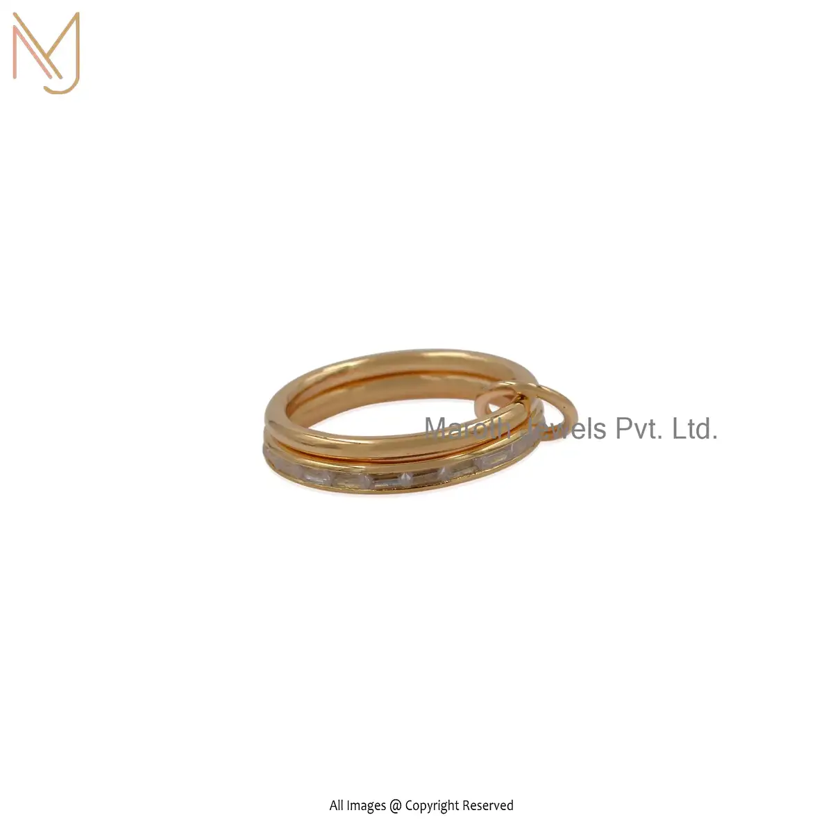 14K Yellow Gold Baguette Link Connector Ring Jewelry Supplier