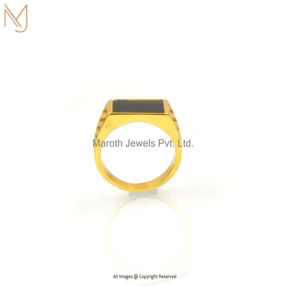 14K Yellow Gold Black Enamel Ring Manufacturer