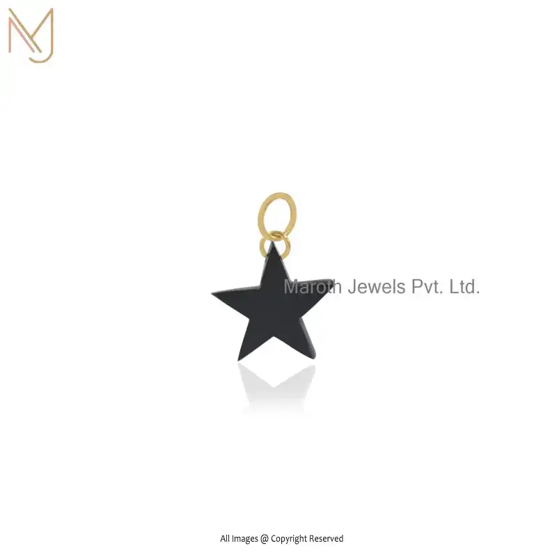 14K Yellow Gold Black Onyx & Red Cubic Zircon Carved Star Charm Pendant Manufacturer