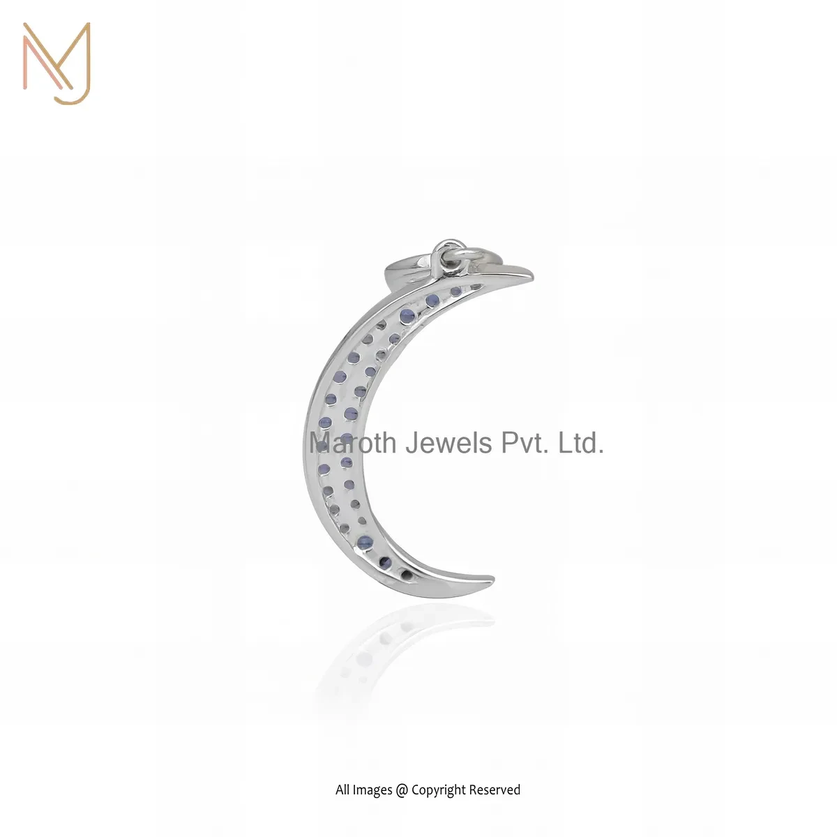 14K Yellow Gold Blue Cubic Zircon Half Moon Pendant Manufacturer