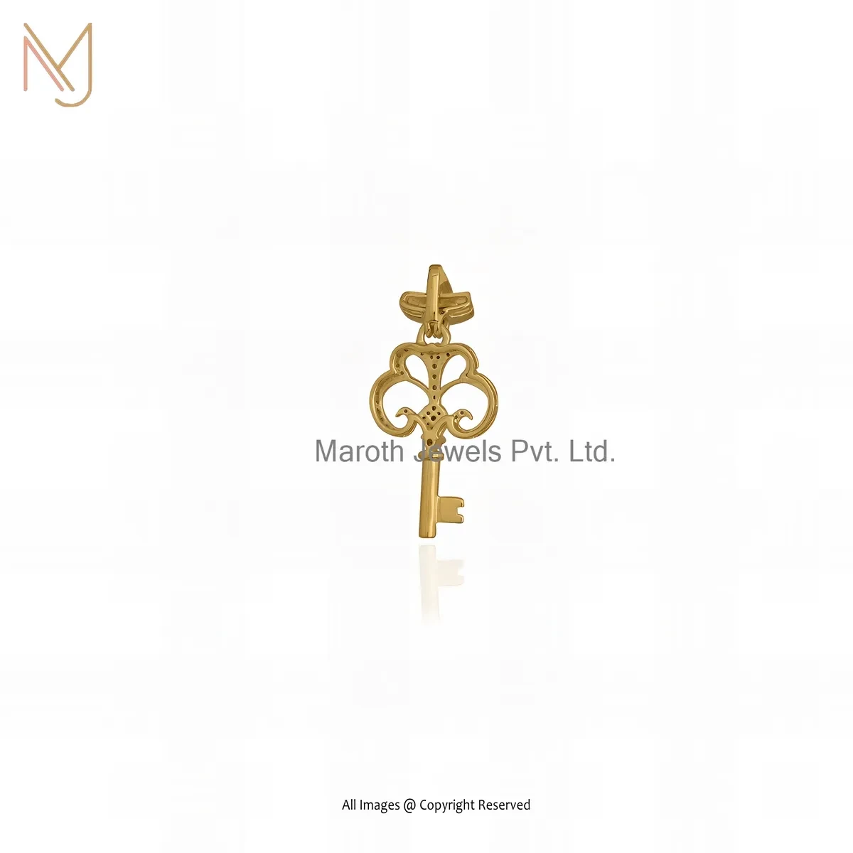 14K Yellow Gold Blue Sapphire Crown Key Pendant Manufacturer