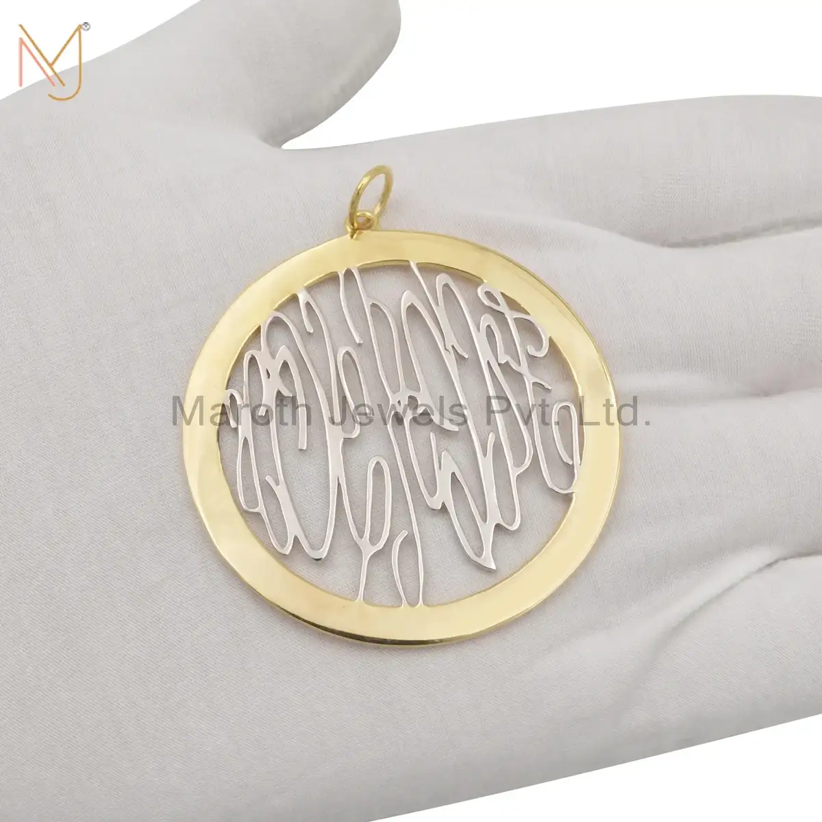 14K Yellow Gold Border Or Initial Letter Natural Silver Monogram Custom Jewelry