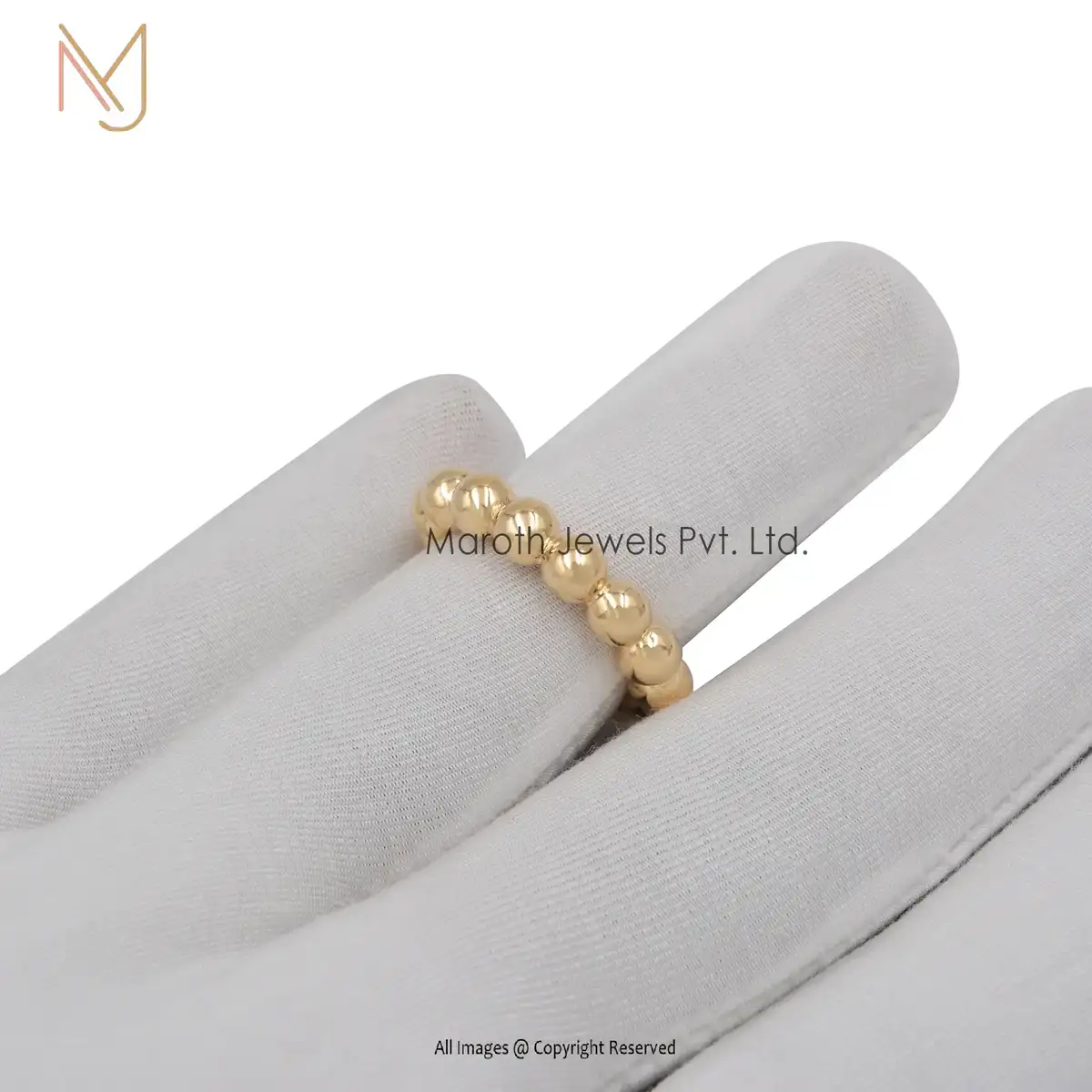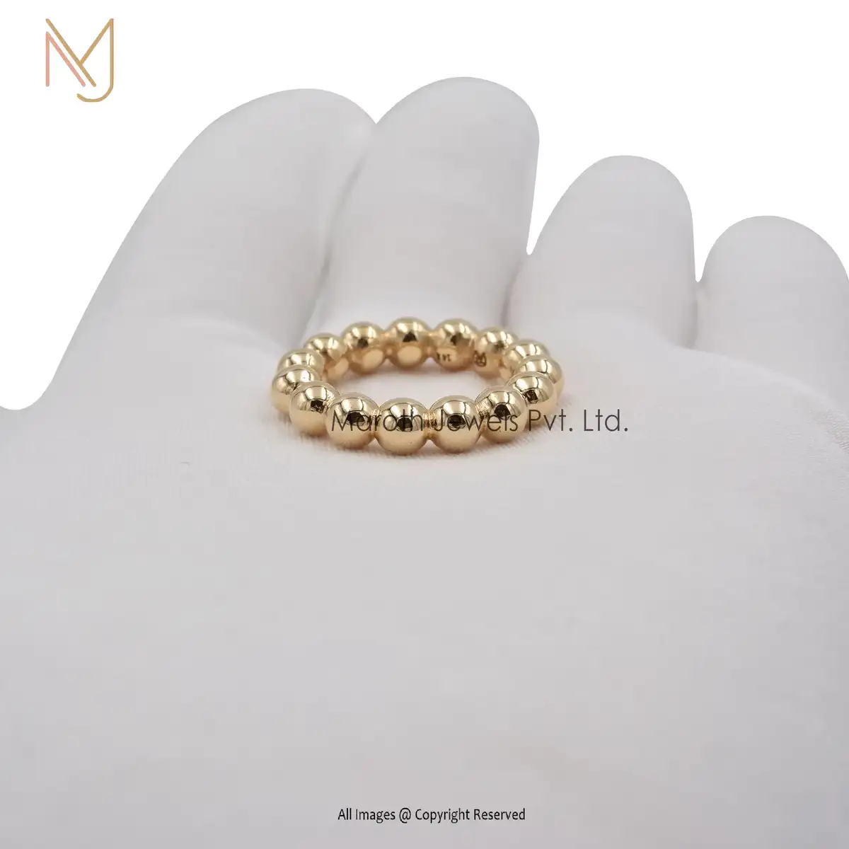 14K Yellow Gold Bubble Ball Ring Solid 5mm Beads Shiny finish Ring Manufacturer