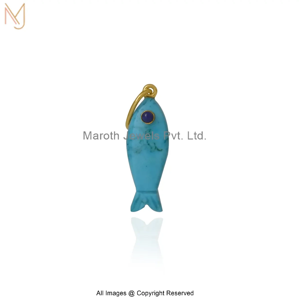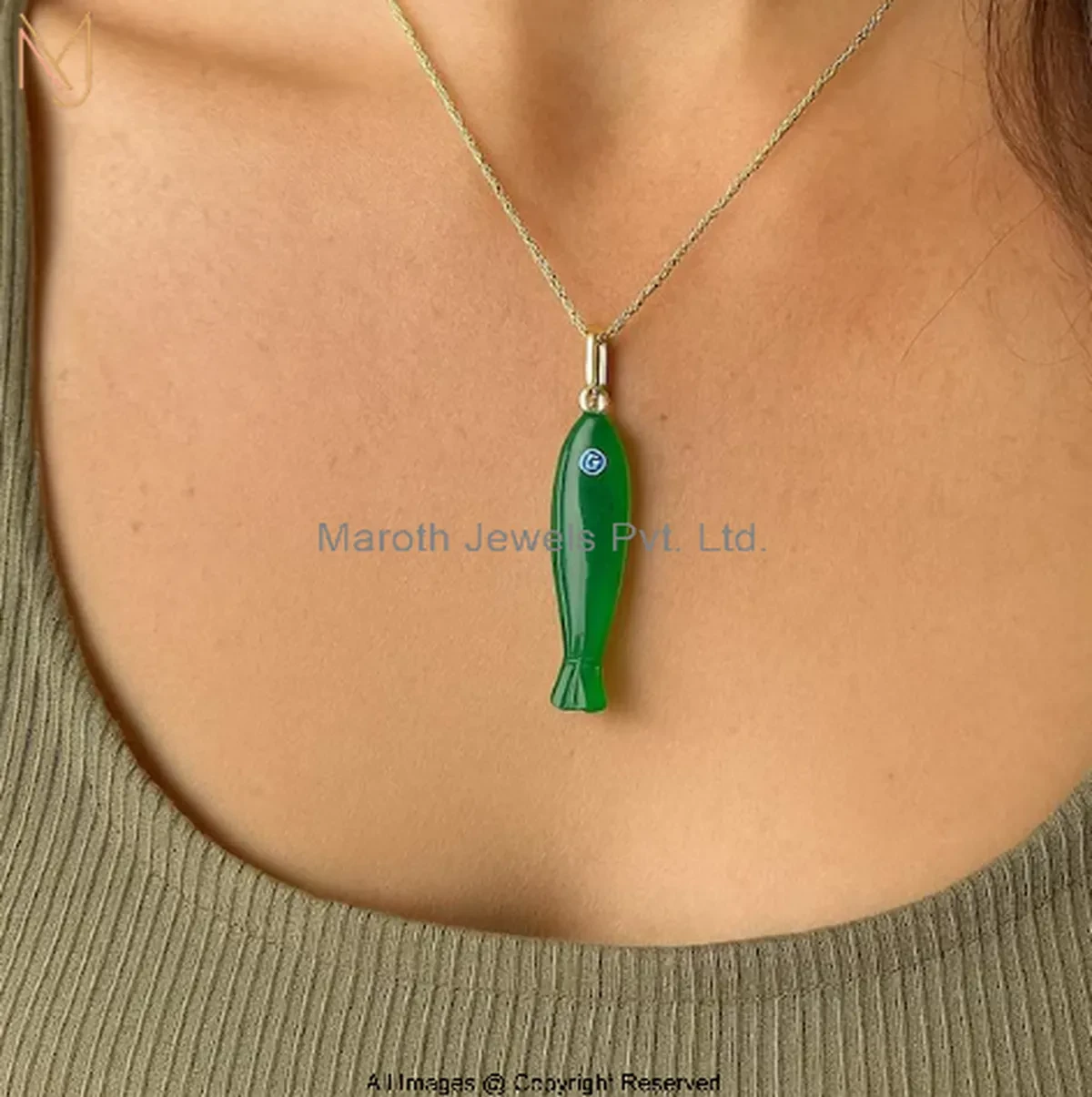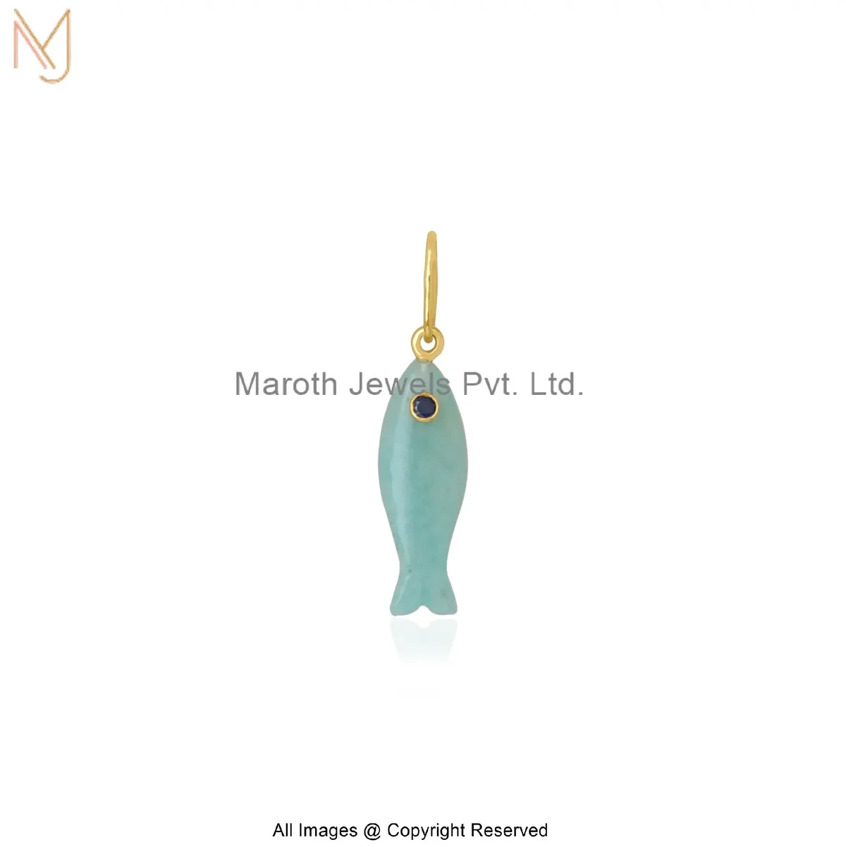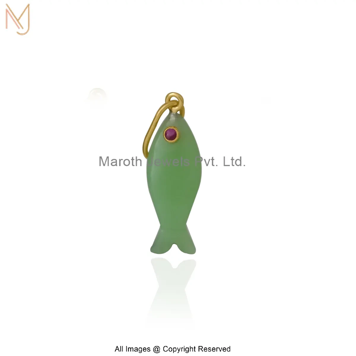 14K Yellow Gold Carved Gemstone Fish Charm Pendant Custom Jewelry