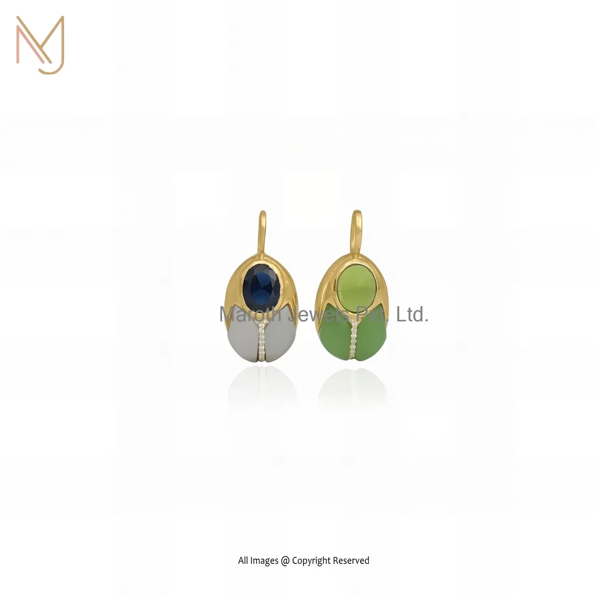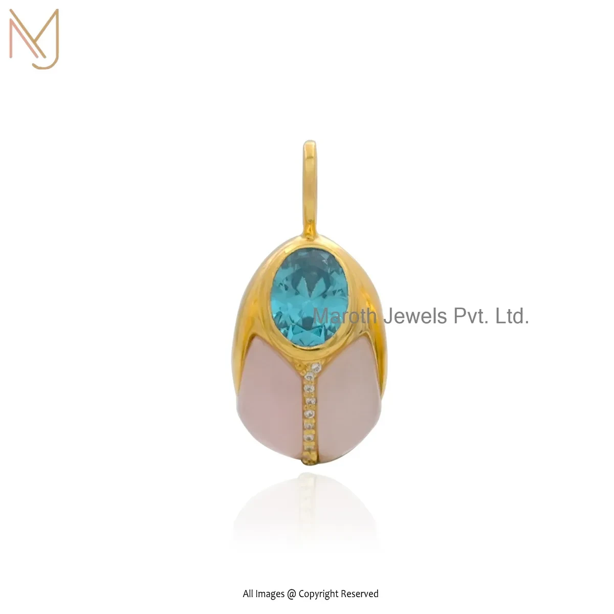 14K Yellow Gold Cubic Zircon & Blue Agate And Aquamarine Bug Pendant USA