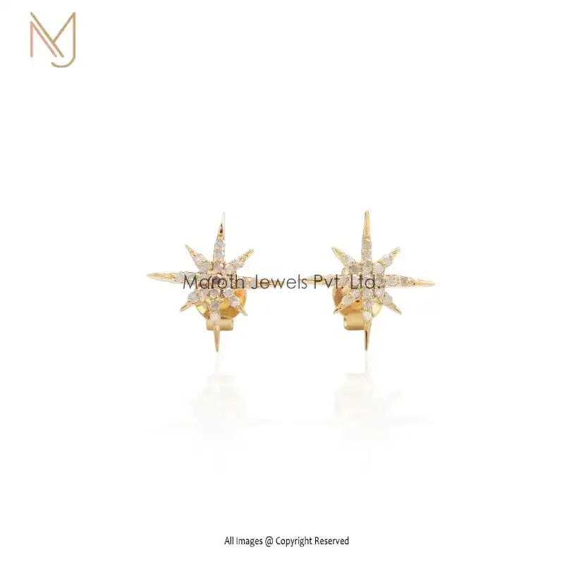 14K Yellow Gold Cubic Zircon Celestial Stud Earrings Jewelry Supplier