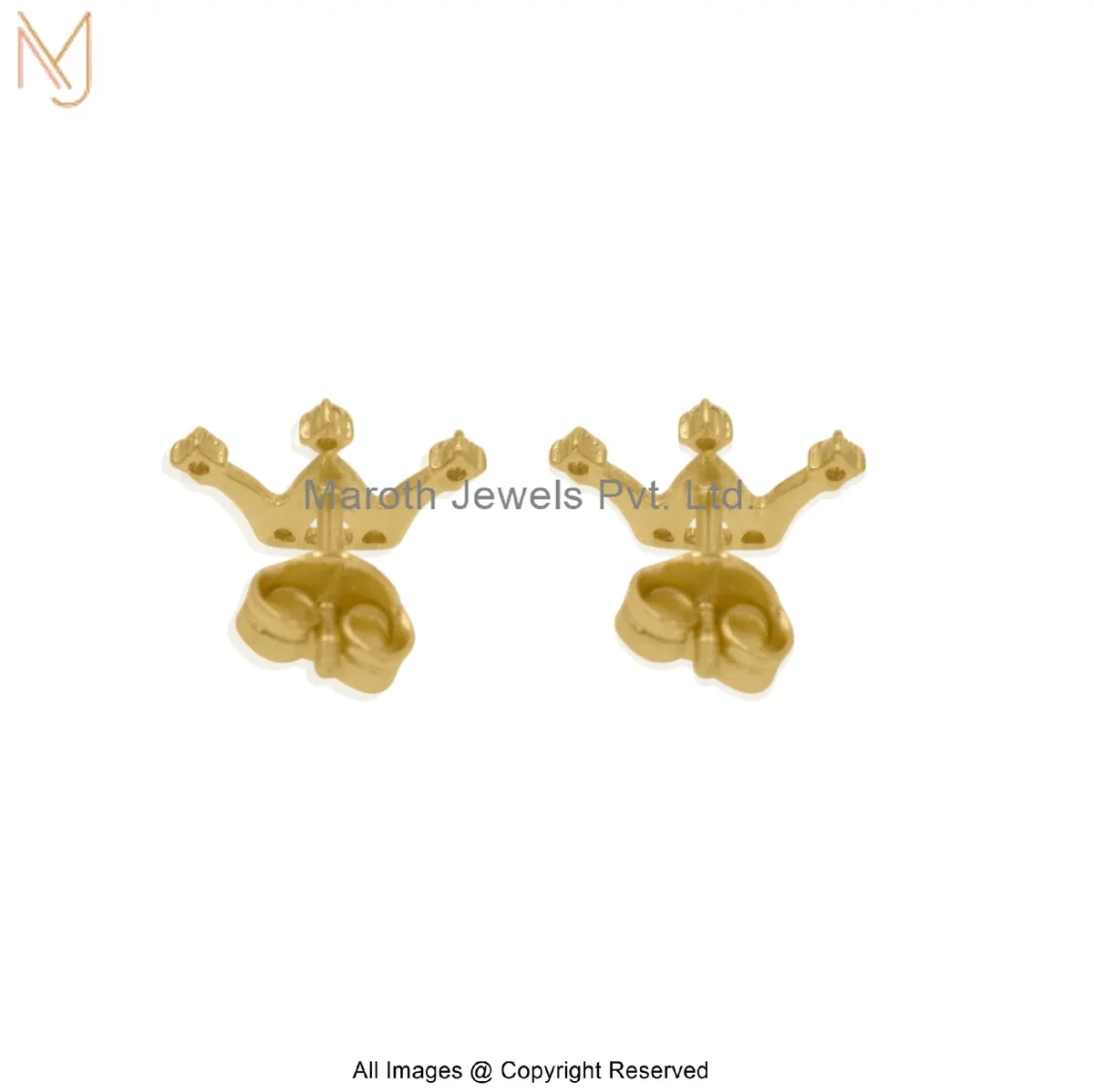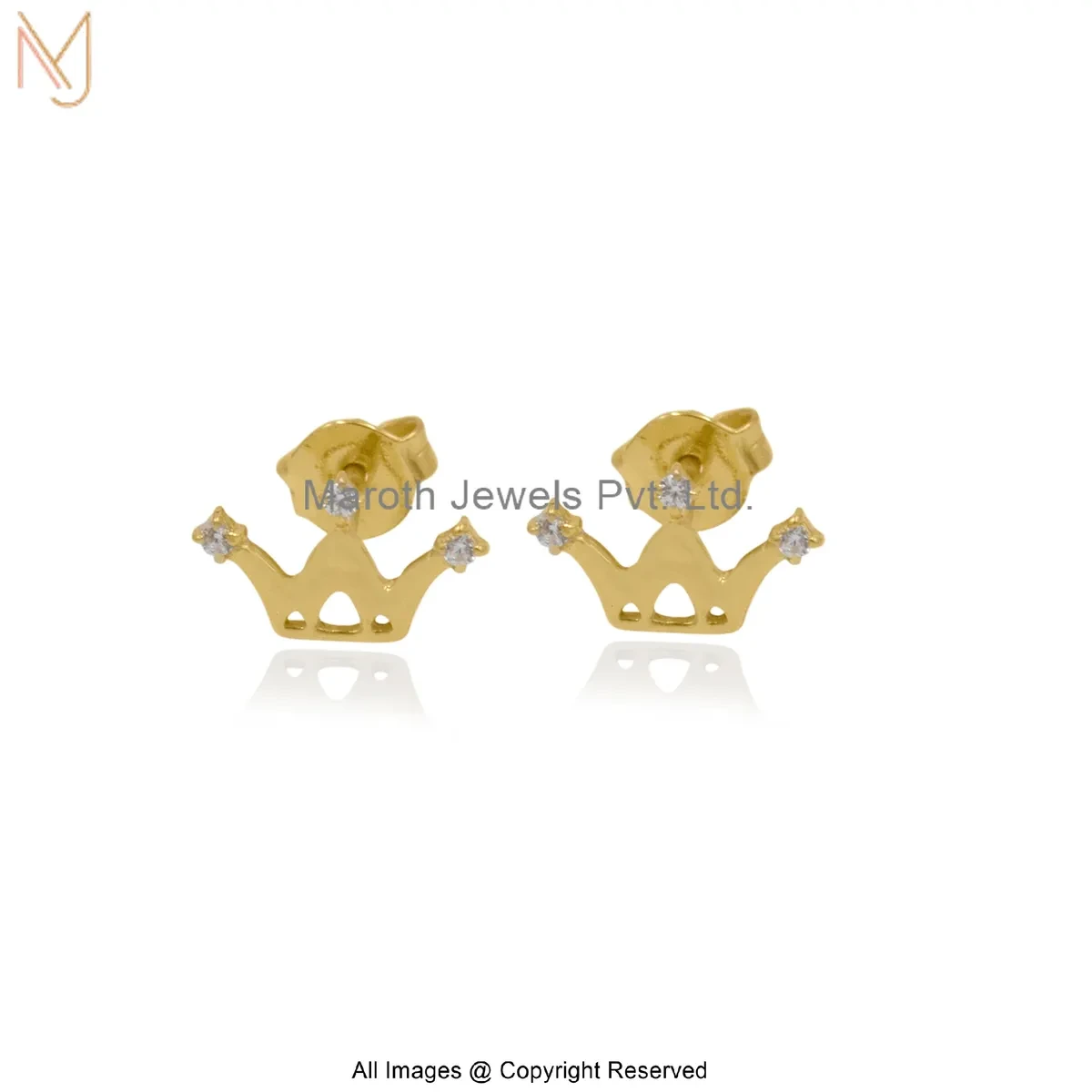 14K Yellow Gold Cubic Zircon Diamond Crown Stud Earring Custom Jewelry