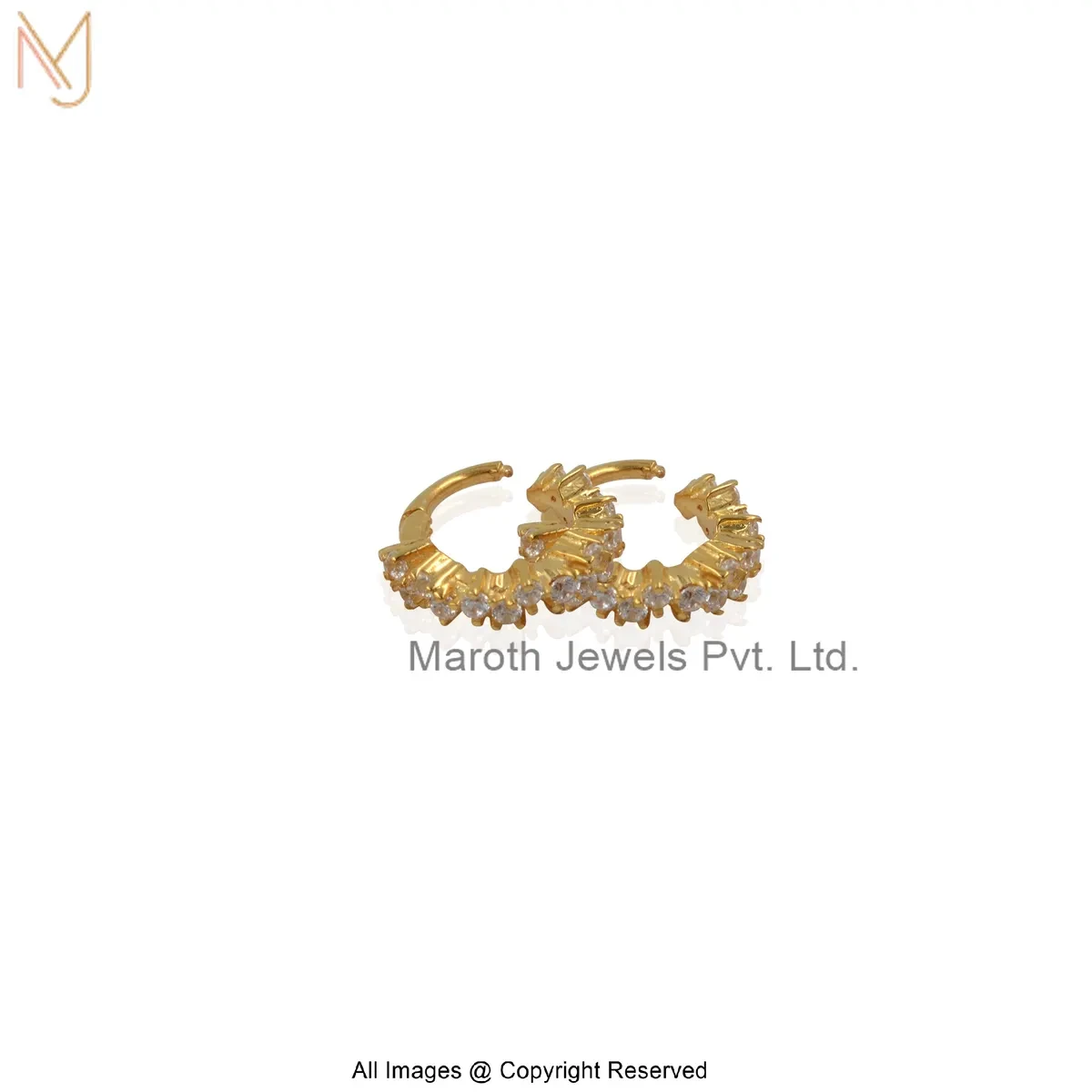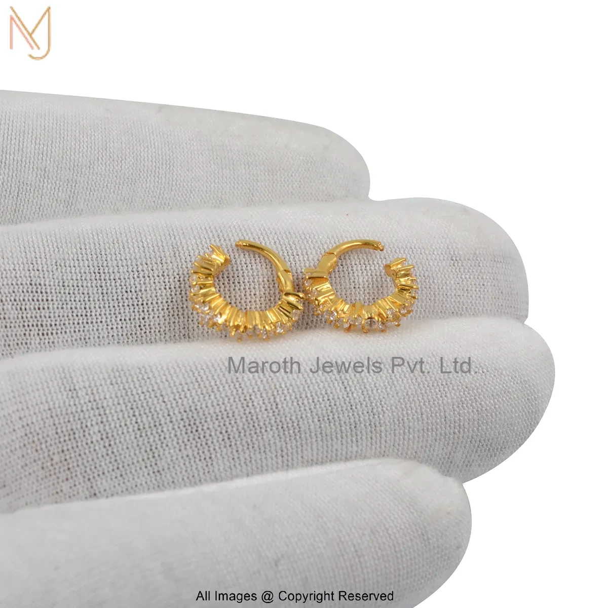14K Yellow Gold Cubic Zircon Diamond Huggie Earring Custom Jewelry