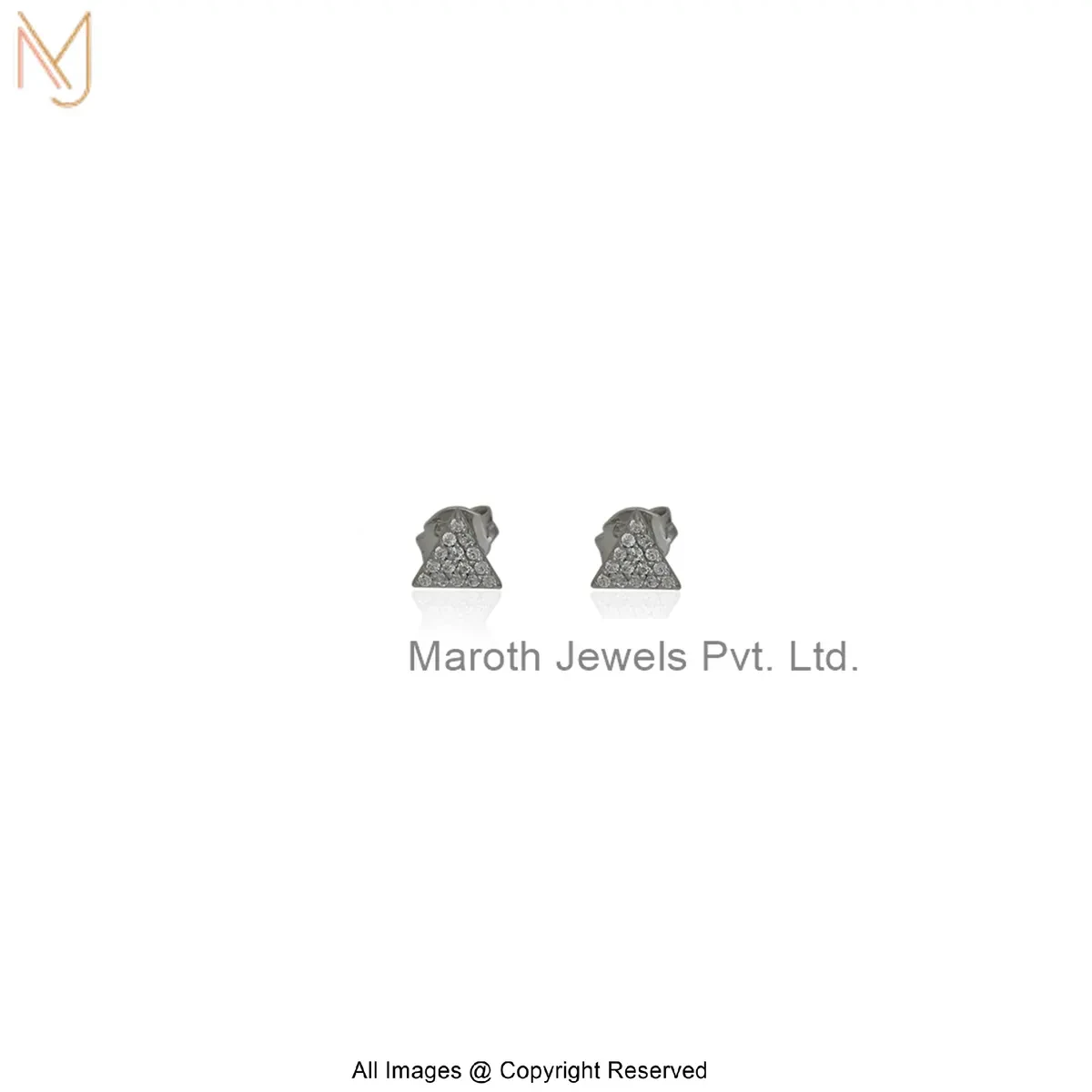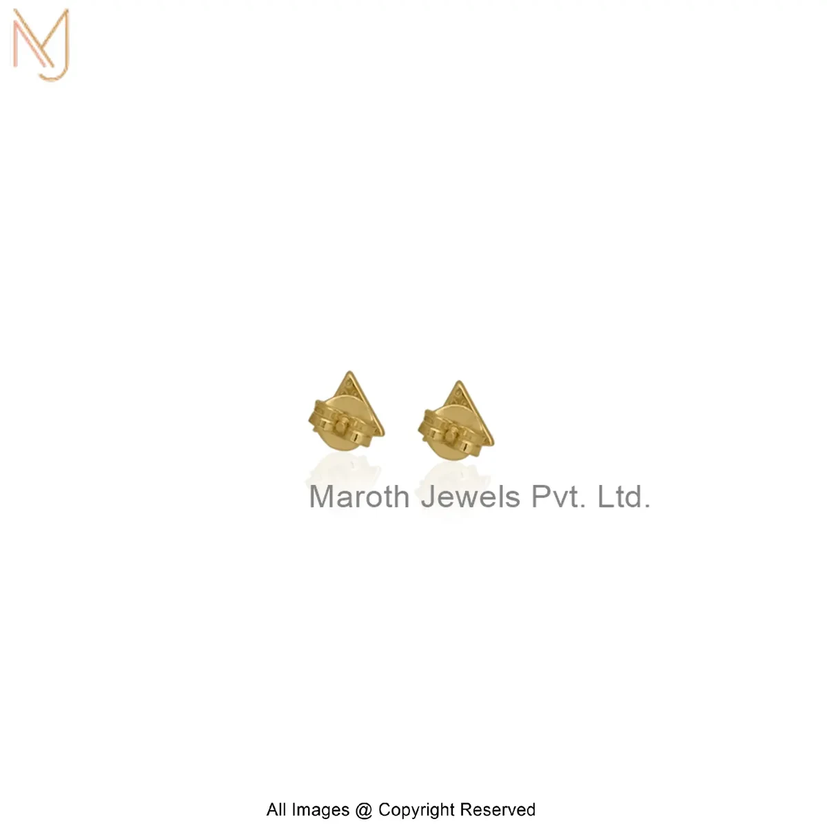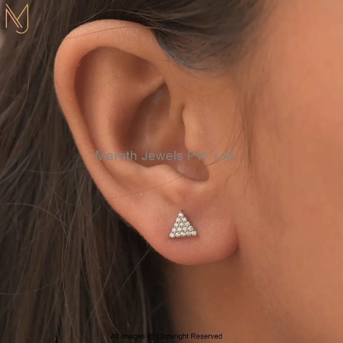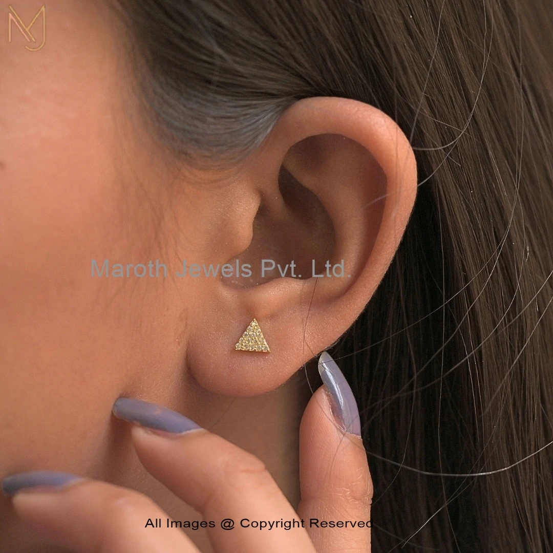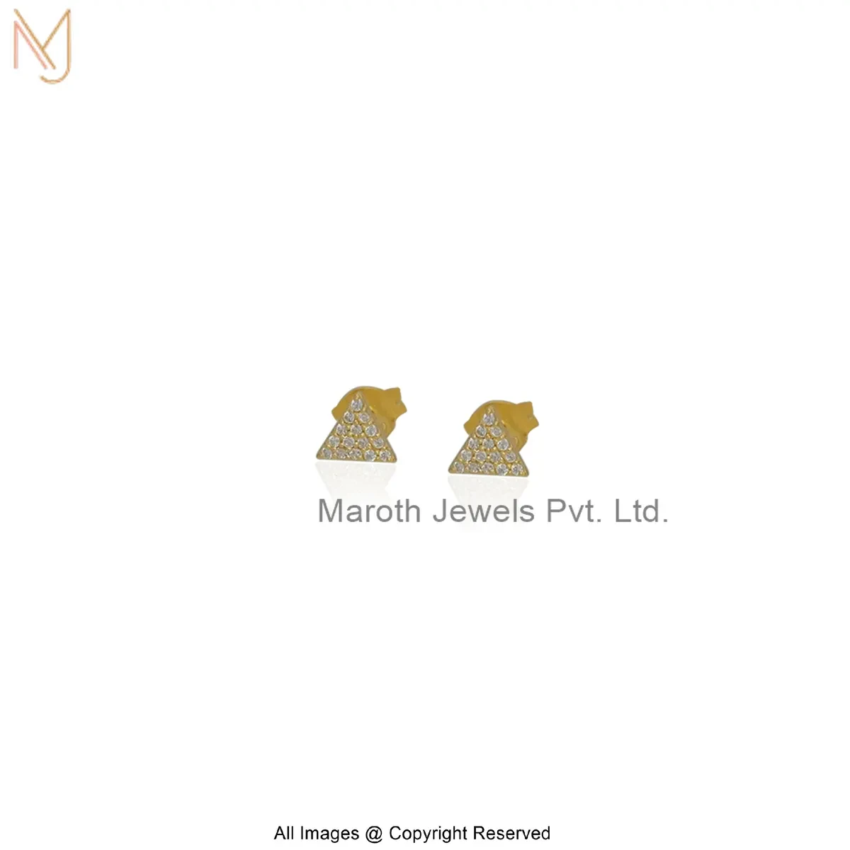 14K Yellow Gold Cubic Zircon Diamond Triangle Stud Earring Custom Jewelry