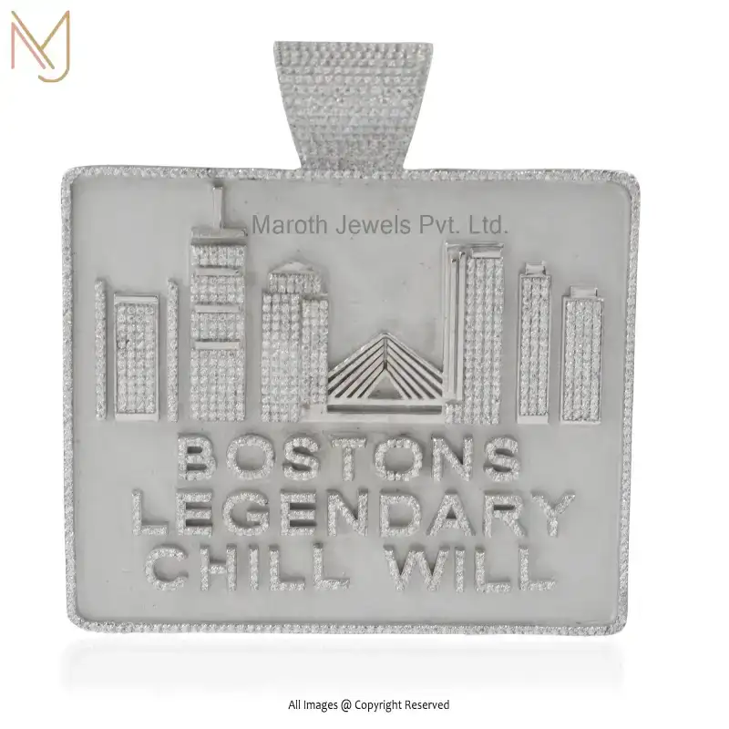 14K Yellow Gold Cubic Zircon Featured Finish Hip Hop Charm Pendant USA