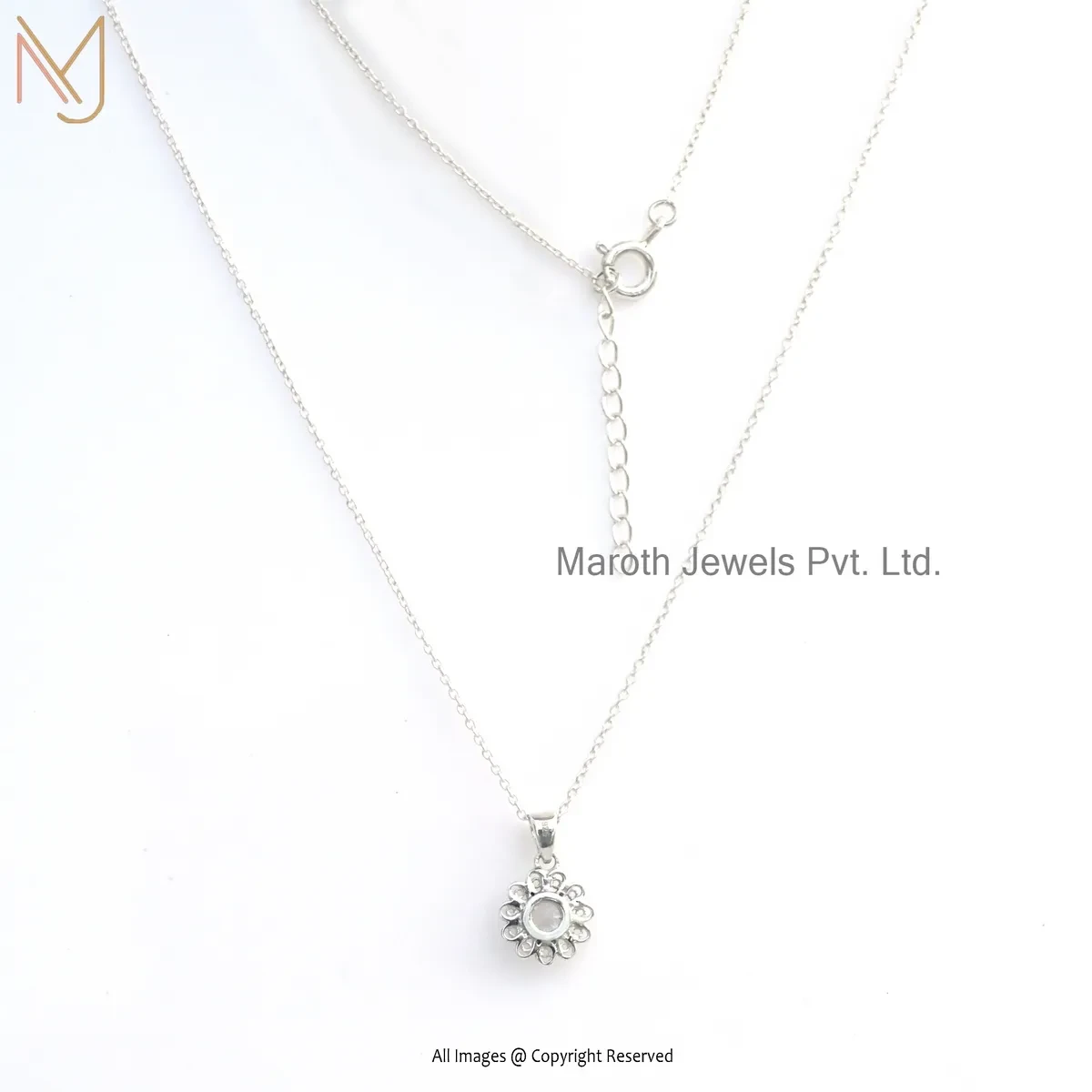 14K Yellow Gold Cubic Zircon Floral Necklace Pendant Jewelry Supplier