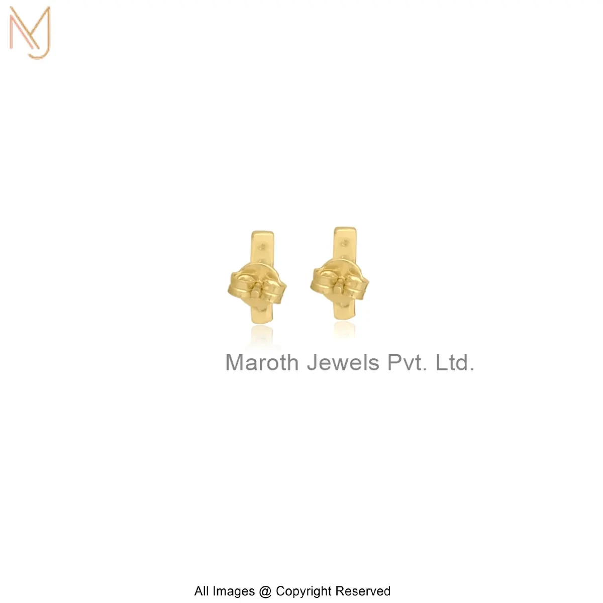 14K Yellow Gold Cubic Zircon Mini Bar Stud Earring Manufacturer