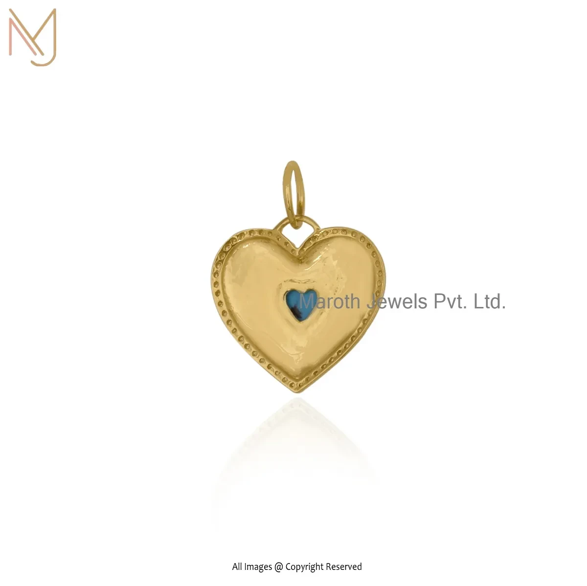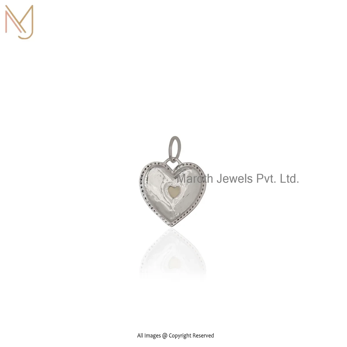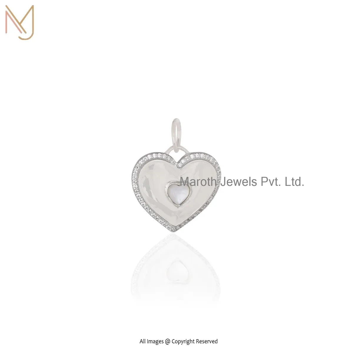 14K Yellow Gold Cubic Zircon & Mother Of Pearl Gemstone Heart Pendant USA