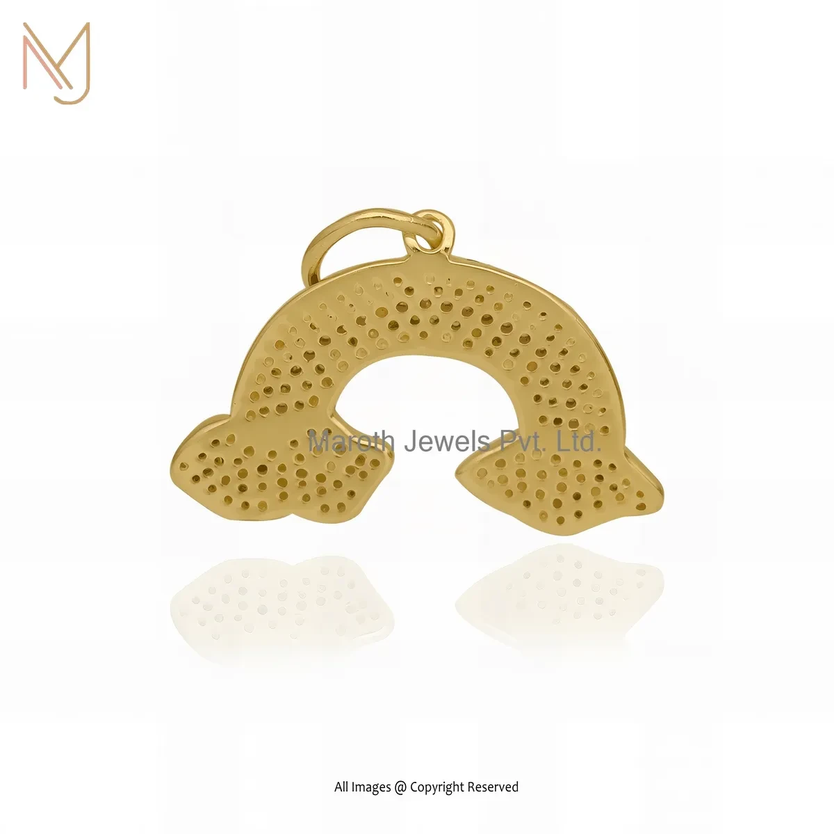 14K Yellow Gold Cubic Zircon & Multi Gemstone Rainbow Pendant Jewelry USA